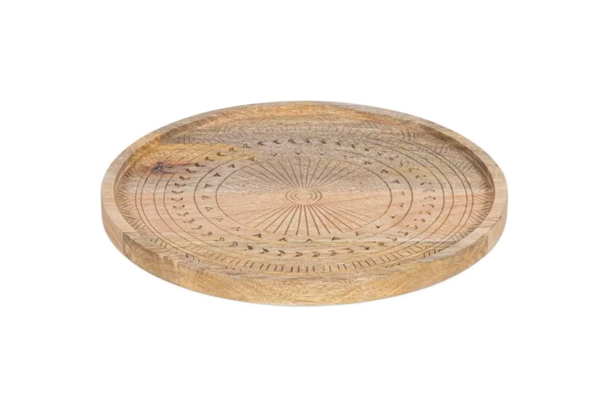 This beautiful tray made from sustainable mango wood is hand etched with a striking geometric pattern that could easily be used as a piece of kitchen art, bringing a gorgeous element of design to a functional household piece. We love trays for their ability to contain clutter and bring harmony to kitchen chaos. Perfect for grouping together jars of dried goods and breakfast items or serving up bowls of tasty nibbles and drinks. We also love them in other living areas as portable spaces for displaying candles, vases and favourite ornaments. Available in two sizes.