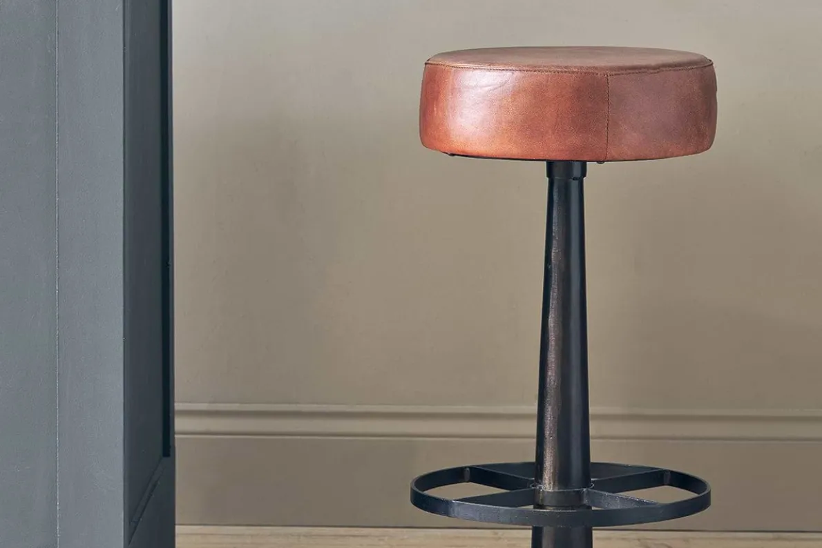 The rich Chocolate tone of our leather Narwana stool makes a stylish and sophisticated piece. These stylish stools are well suited to a kitchen space and the upholstered seat makes them a comfortable addition to a breakfast bar and kitchen island.