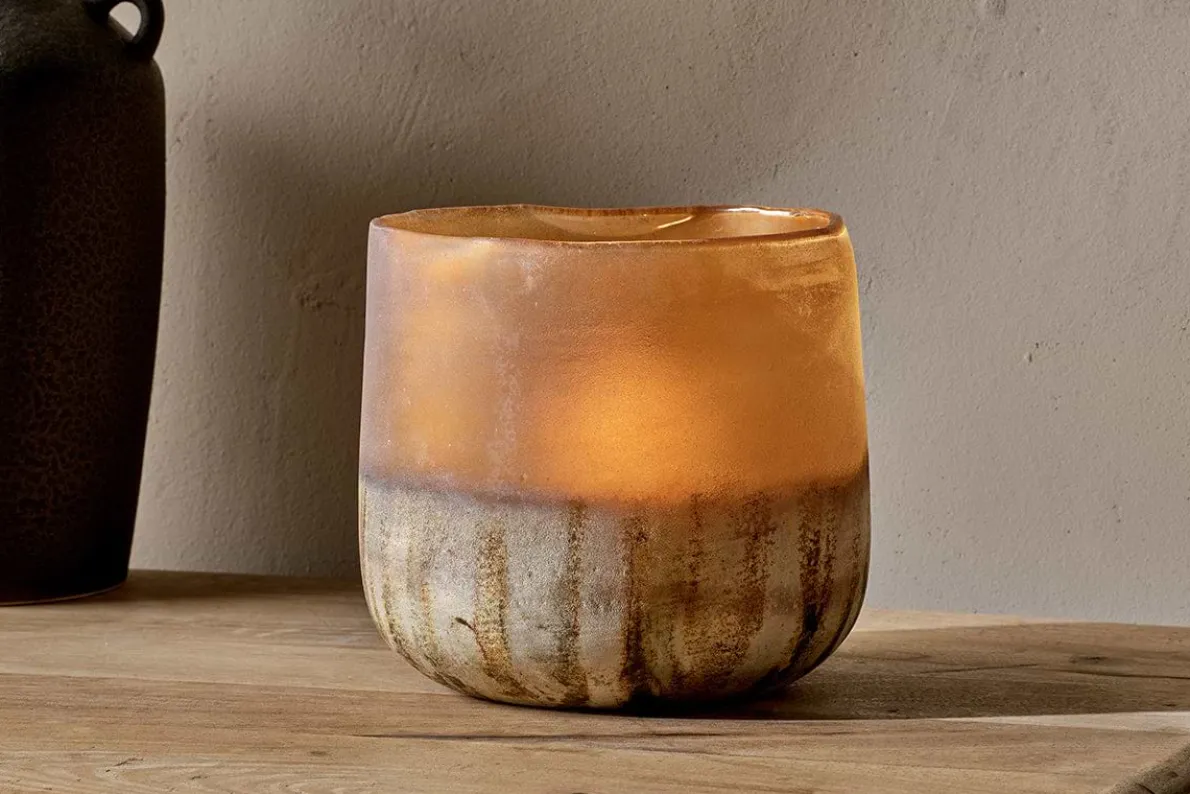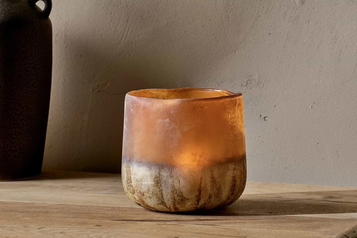 An autumnal update on our classic Ngolo tealight holder, the warm amber hues and textured rustic finish of this design are created from recycled glass, skilfully hand blown into striking organic forms. When lit, they add a beautiful soft glow for an inviting living space exuding peace and tranquillity. Available in three sizes, ideal for grouping together or dotting along a table or a sideboard.