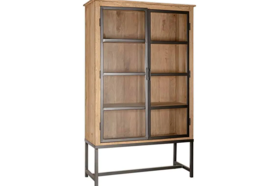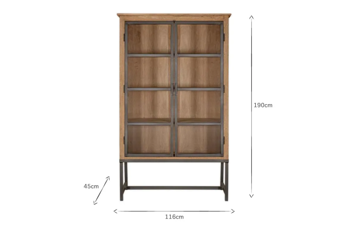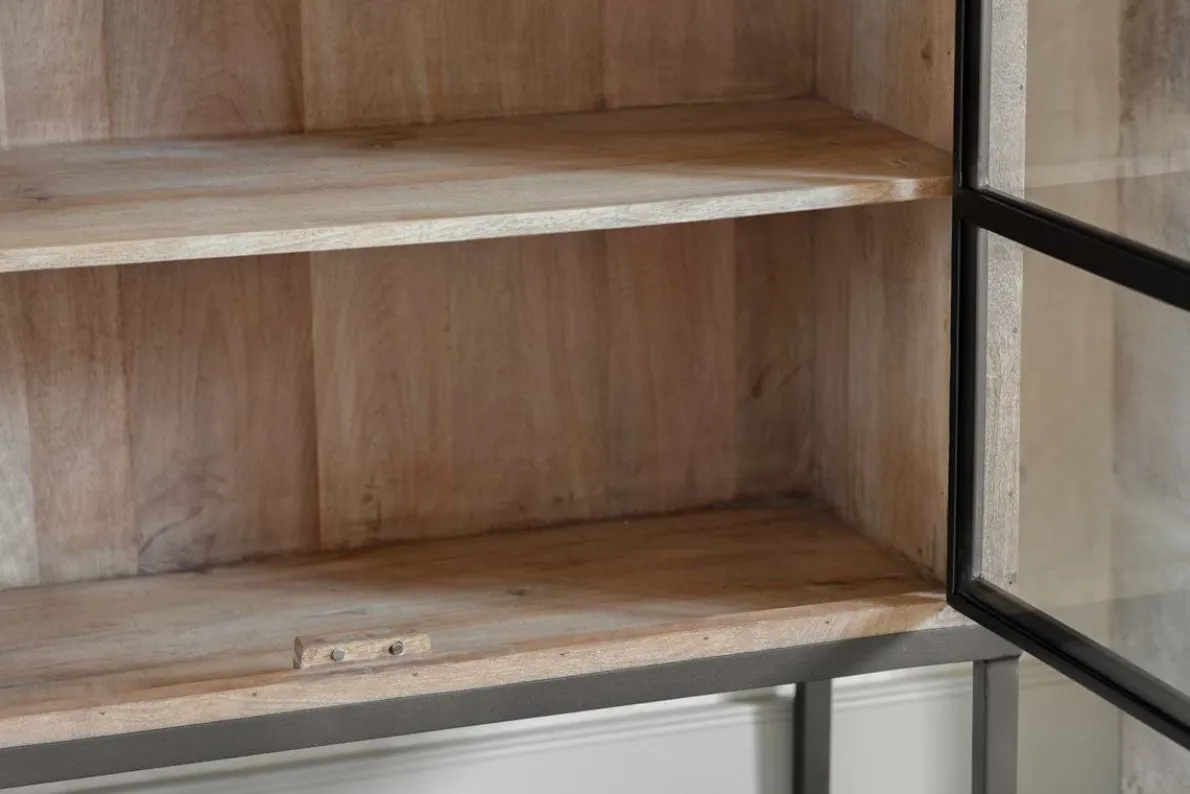 This elegant Nirvi cabinet has an antique black iron structure for an industrial aesthetic which is complemented by the warm natural tones of the mango wood cabinetry. Perfect for a hallway or living space to curate your choicest books and objet d’art, or indeed in a kitchen as a handsome stand-alone crockery cupboard.