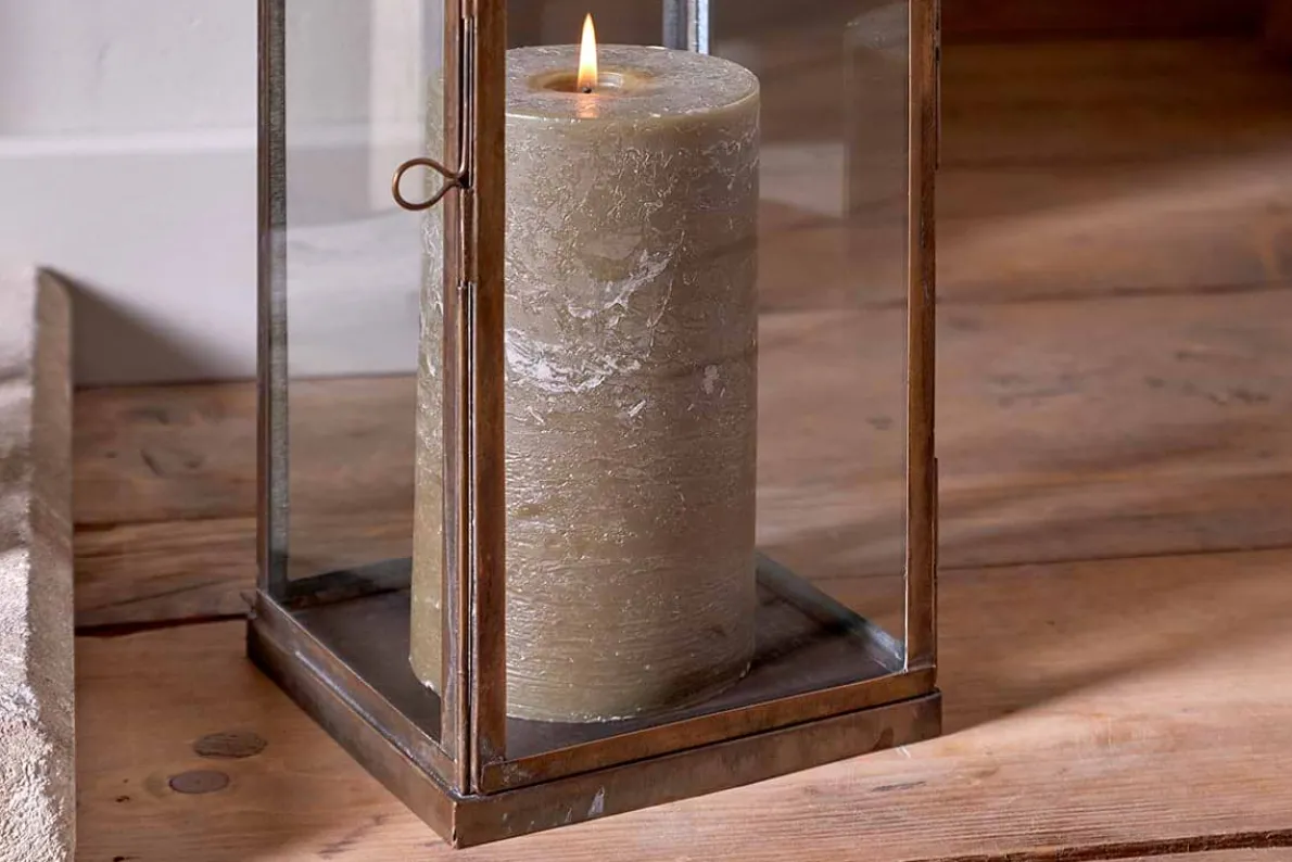 Simple, understated and elegant, with a nod to traditional Eastern-style lanterns, the Nivas will look striking next to a doorway or fireplace to create a warm and welcoming atmosphere. An aged look with a modern nkuku twist, the antique brass finish pairs well with the rest of our nkuku collections of home accessories and furnishings. The handle makes for easy manoeuvring. Pair with our rustic soy blend Pillar candles. Available in two sizes.