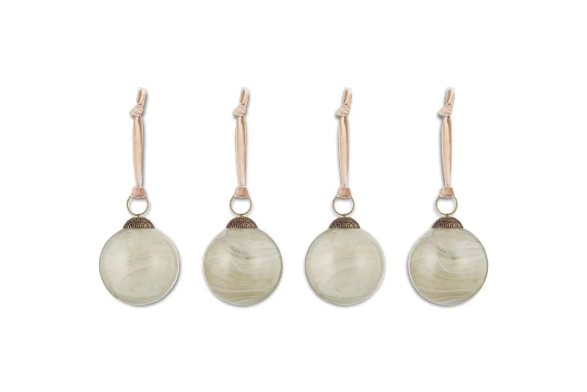 Continuing our natural, pared- back festive colour scheme, our Oja Baubles deliver a sophisticated yet understated look with their swirled smoky marble finish. The high-shine is offset by its matt antique brass clasp, creating an irresistible addition to a tree, table or garland that feels elegantly natural and fresh, offering a contemporary and calming alternative to colour-filled seasonal decorating.
