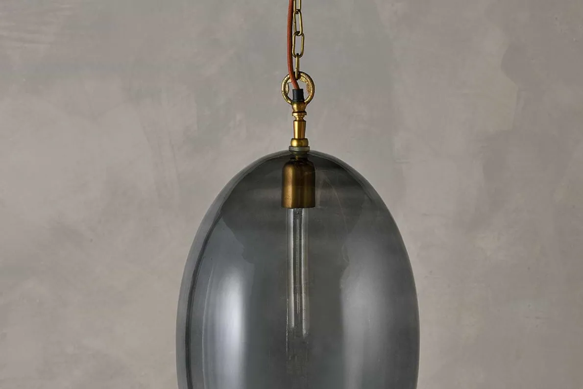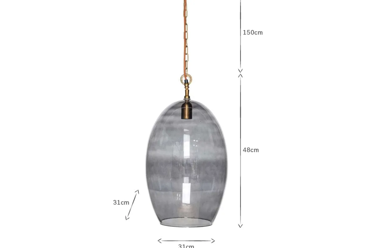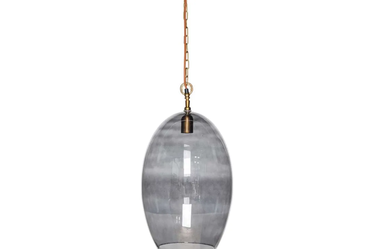 Create an impressive focal point with our large Otoro oval pendant light, beautifully crafted from recycled glass in a sophisticated smoke hue that gently diffuses the light. When switched off, the elegant neutral colour adds warmth to the room and when on, the light is soft and delicate. The size of the light makes it a striking feature light. Style as a central light in your living room or hallway, or position in a stairwell or entrance porch.