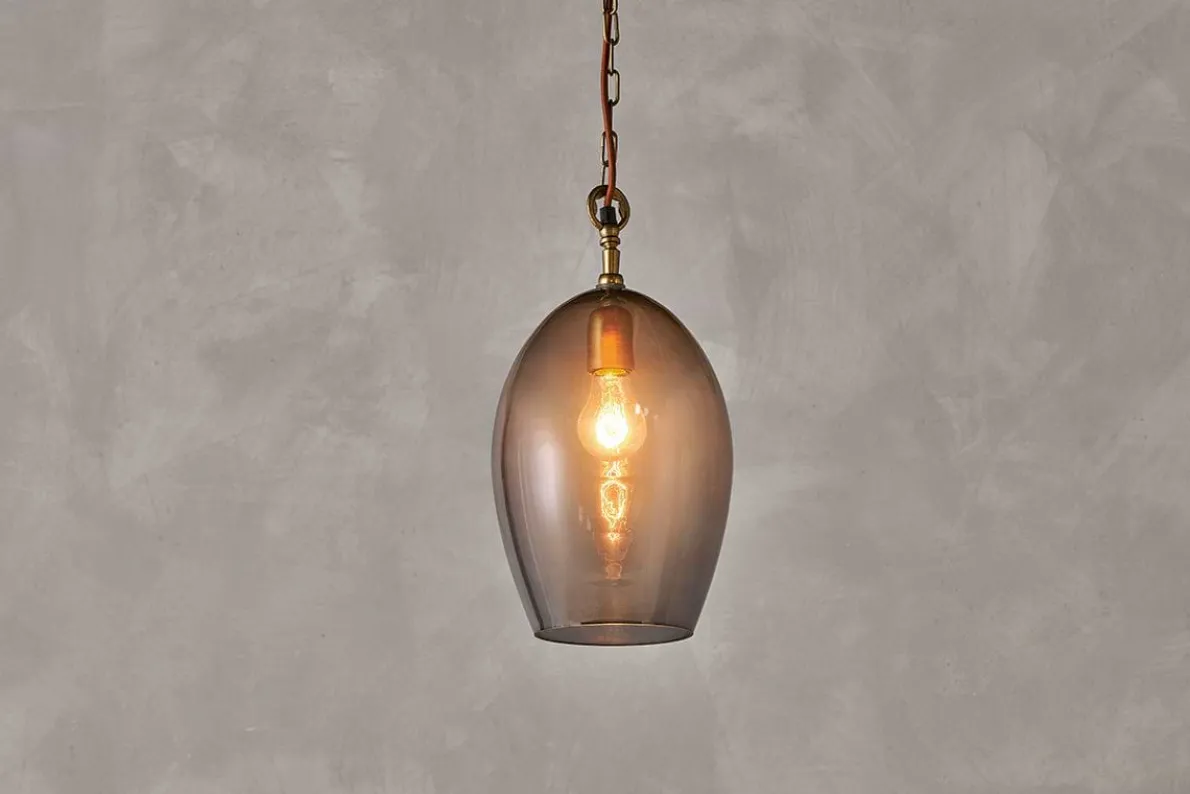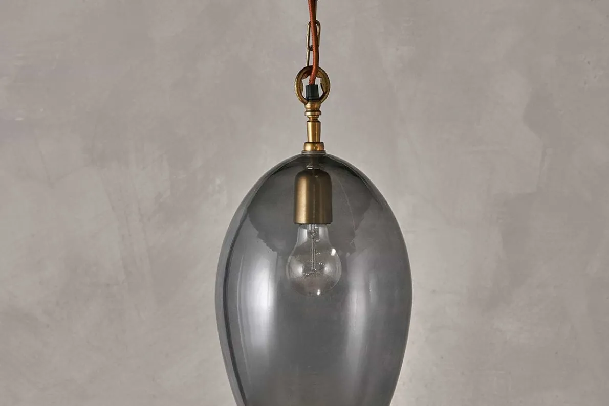 Create a striking focal point with our Otoro small oval pendant light, beautifully crafted from recycled glass in a sophisticated smoke hue that gently diffuses the light. When switched off, the elegant neutral colour adds warmth to the room and when on, the light is soft and delicate. It makes the perfect feature light. Style as a central light in your living room or hallway, or position in a stairwell or entrance porch.