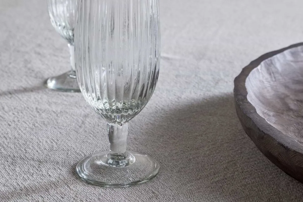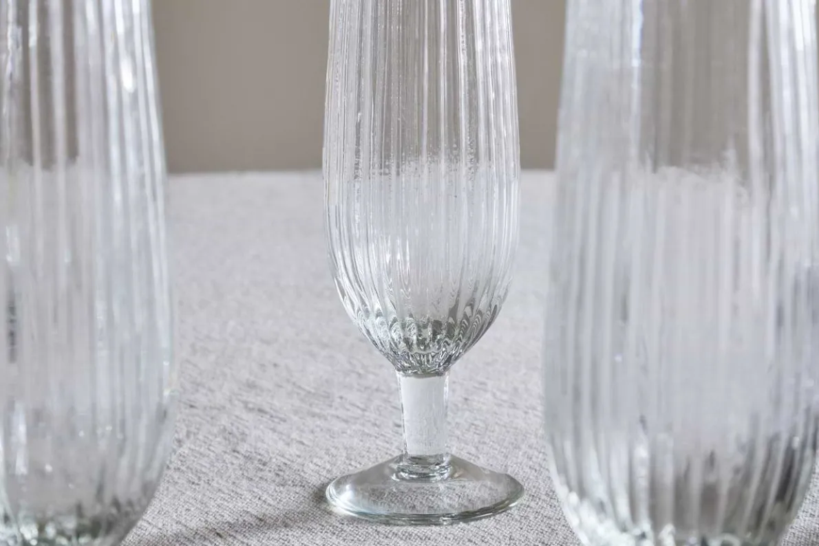 This elegant champagne flute features a timeless silhouette and a subtle ribbed texture that adds depth and interest to the design. Made from recycled glass, it is perfect for both everyday use and special occasions. The clear finish and classic shape make it a versatile addition to any occasion.