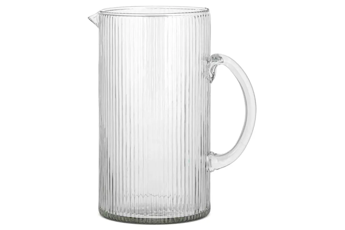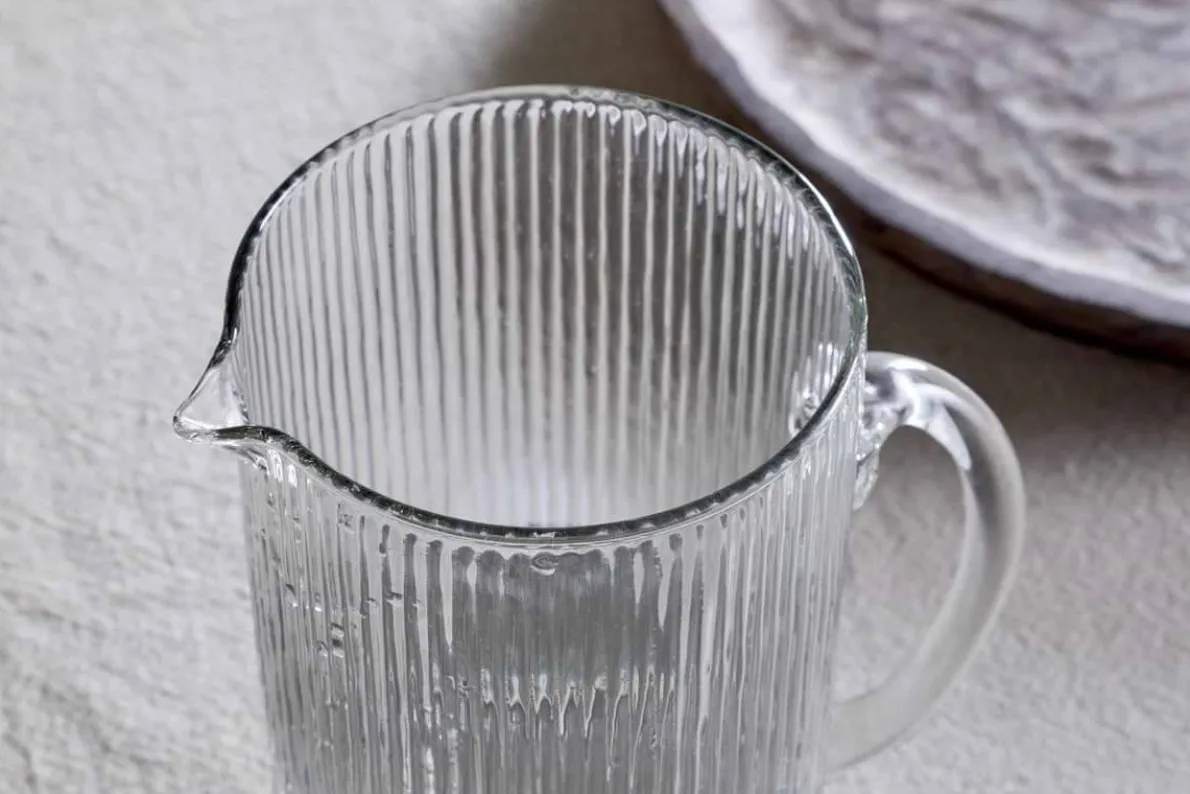 This elegant jug features a timeless silhouette and a subtle ribbed texture that adds depth and interest to the design. Made from recycled glass, it is perfect for both everyday use and special occasions. The clear finish and classic shape make it a versatile addition to any table setting.