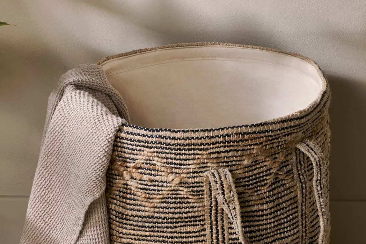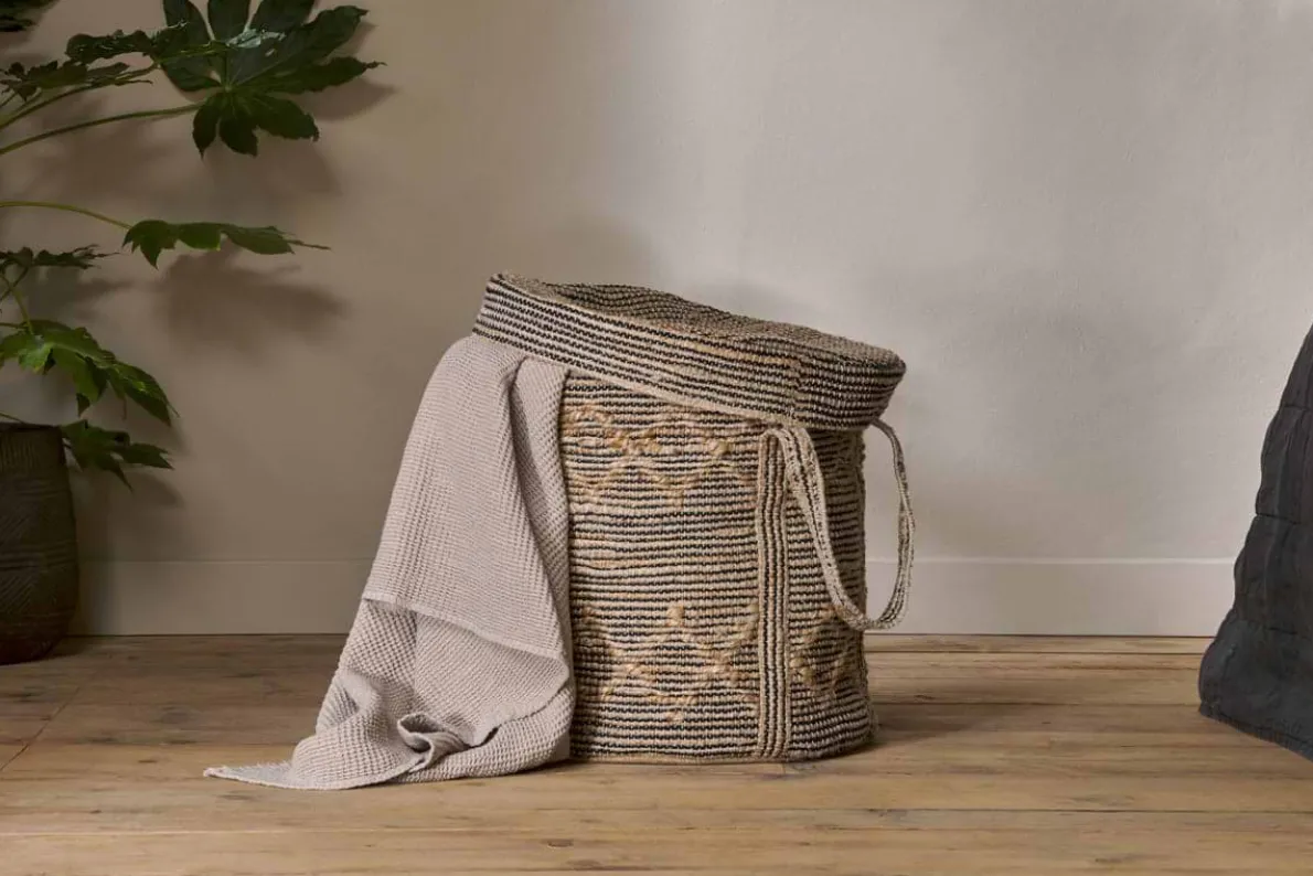 Masterfully blending traditional Indian geometric patterns with the natural beauty of jute, our Padla laundry basket is a testament to craftsmanship and style. With handles for ease of carrying and a soft cotton lining, this basket comes with a lid to ensure your laundry stays discreetly out of sight. Also ideal for storing towels or blankets, it is the perfect blend of functionality and aesthetic appeal.