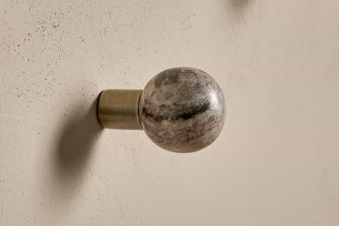 Elegance meets functionality with our Paladi hooks. Expertly hand-carved from soft grey marble, each one is shaped into a perfect sphere, giving an artful approach to everyday home organisation. The polished, round design is so striking these hooks could serve as wall art in their own right. The smallest size hooks fit garment hanging loops so are perfect for coats and jackets. Medium and large sizes are also available.
