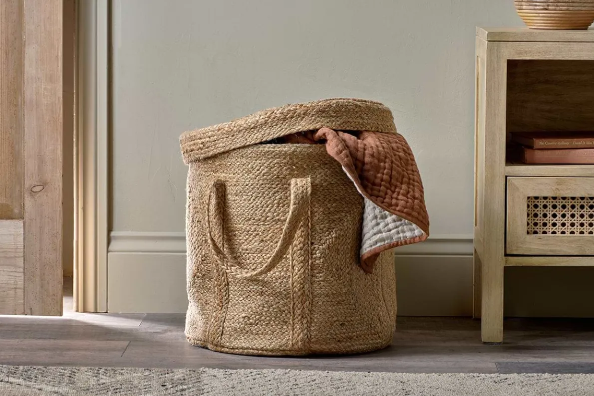 The Pallu basket is beautifully hand-braided from natural hemp bringing a relaxed aesthetic to home storage. The colours vary slightly from pale sand to rich honey throughout each basket design, making every piece perfectly unique. Practical and functional with a calming earthy colour, this simple storage basket has handles for ease of carrying, a cotton canvas lining and a snug lid for hiding laundry until wash day. A neat and neutral addition to a bedroom, bathroom or landing, it could equally be used for towel storage. Hemp is a durable, tactile and eco-friendly material.