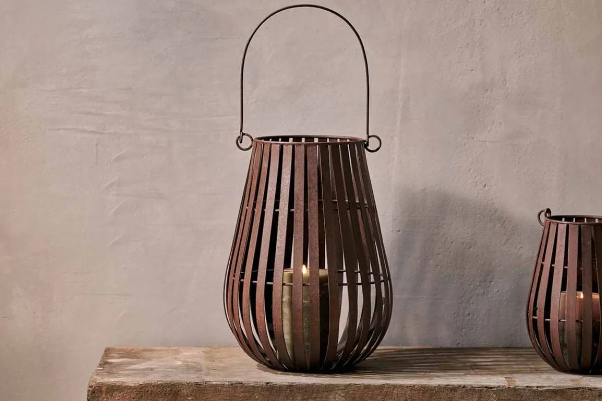 Our Pothos lantern is crafted from robust iron with a rustic finish that gains character beautifully as it ages. Elegantly versatile, it was created for outdoor use but can transition easily indoors, blending naturally with its surroundings. We love how the design allows light to softly diffuse, creating unique patterns. Sturdy and distinctive, this lantern brings both functionality and stylish charm to your space. Pair the large and small size for an eye-catching presentation. Style with our pillar candles.