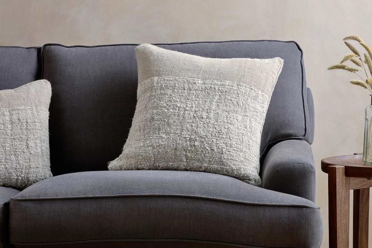 Our Puli recycled linen cushion covers are skillfully woven from the finest quality recycled hand-spun yarn. In timeless neutral tones of soft grey and off-white, these covers have an organic look, bringing an understated elegance to your living space. The relaxed, slubby texture of the linen feels both comfortable and casual, making it an excellent choice for any room. Linen is known for its breathability and durability, and we love its natural, unstructured aesthetic. Available in two sizes. Please note, this is the outer cover only. Pair with our Puli throw. Our feather cushion inners will accompany your cushion cover perfectly.Please note, the size of the cushion inner will display slightly larger than our cushion covers to allow for a plump finish when put together.