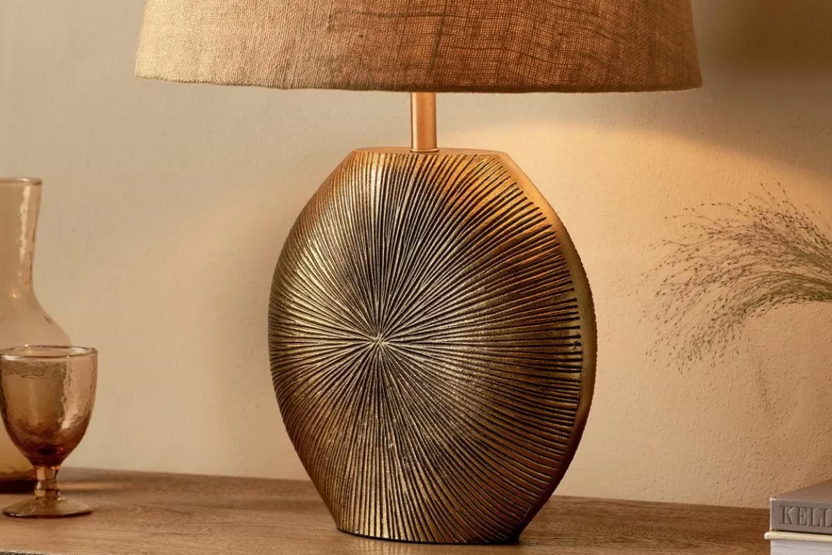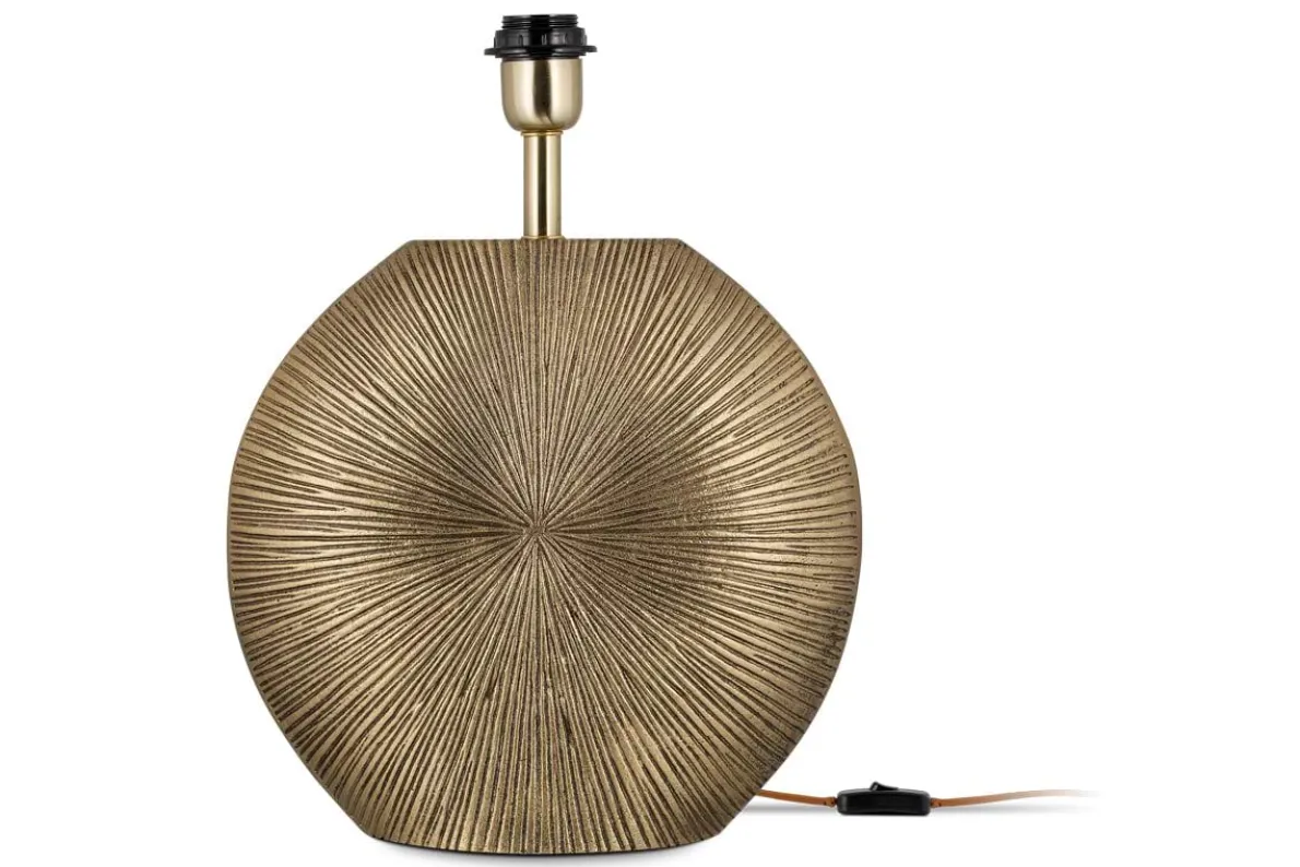 Our Ramvas table lamp in antique brass has a distinctive silhouette with an etched design and a soft, textured finish that comes from the cast metal process. The finished look combines an organic feel with the sumptuous appeal of antique brass. A striking addition to a sideboard or to bring diffused light to an alcove, the subtle golden metallic hue creates visual contrast when paired with a simple nkuku medium jute lampshade (sold separately).