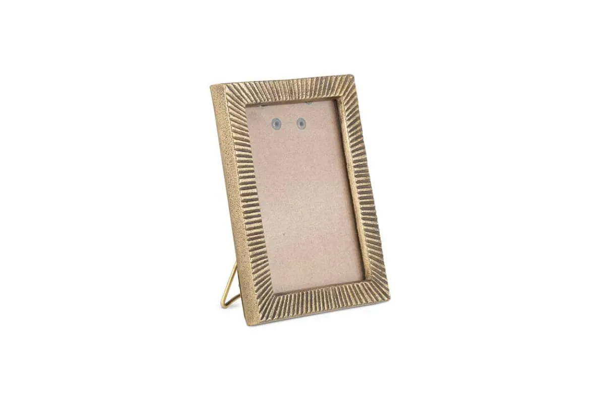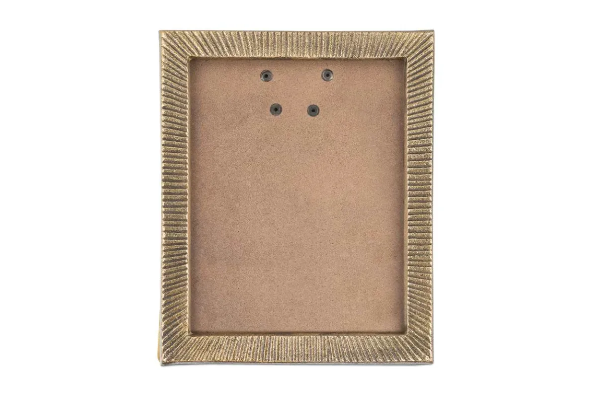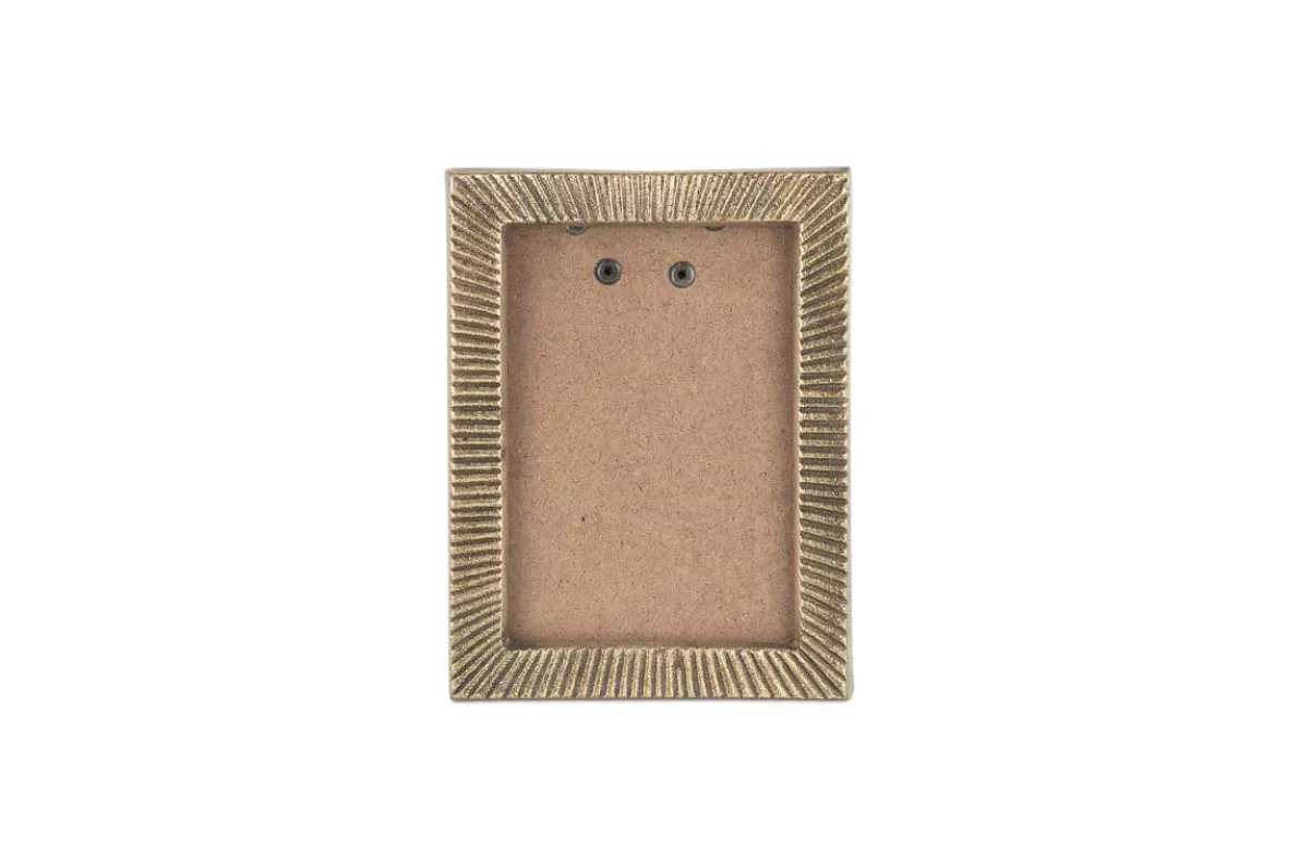 Our Ranoli frame is crafted from cast aluminium, featuring an antique brass hue that complements its unique antique curved groove design. It has an imperfect textured finish that adds a layer of depth and character, making each piece distinctly one-of-a-kind. Perfect for showcasing your cherished memories with a touch of vintage elegance, blending beautifully with both modern and traditional decors. Can be presented standing or hung on a wall. Available in two sizes.