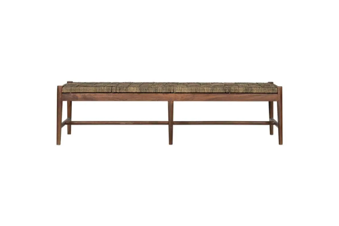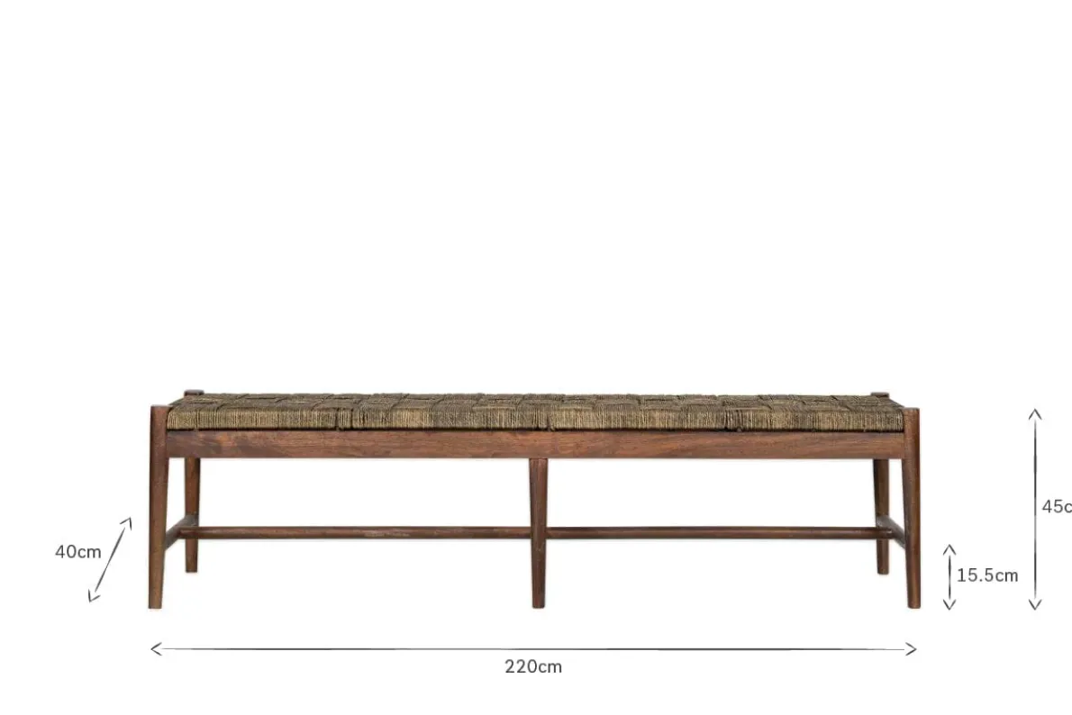 The simple design of our Raunak woven bench combines a solid Acacia wood frame in a dark walnut finish, with a simple woven seat made from Munja grass for a comfortable understated look. Made by carefully weaving the strong fibres around a framework, this bench is created using traditional artisanal skills. Munja grass grows in abundance along India’s riverbanks. It has traditionally been used to make ropes and baskets and is a durable natural material with rich eco-friendly credentials.