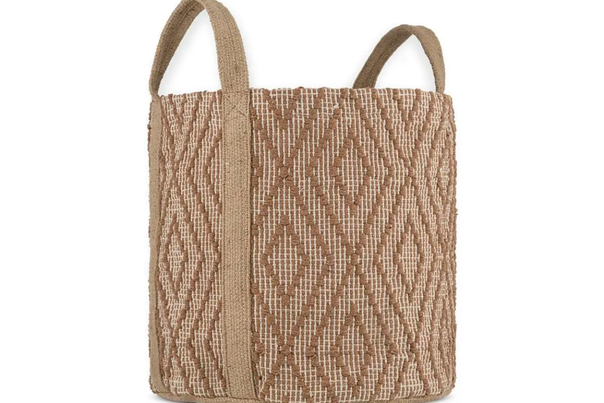 Versatile and functional, this beautifully woven basket has a traditional kilim design depicted in warm tones of rust and natural jute to bring a touch of muted colour to a hallway, living space or playroom. With handles for ease of carrying and a soft cotton lining, this basket is perfect for clearing clutter neatly away, blending utility and aesthetic appeal.
