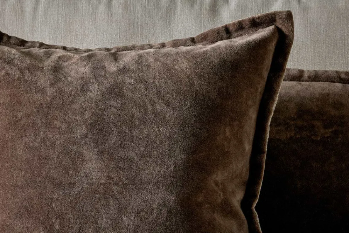 Luxurious and elegant, this cushion cover features a rich, thick velvet front in a beautiful rich brown colour. Backed with natural linen and finished with a flange edge, it combines luxurious texture with durable craftsmanship. The fabric is then woven on a loom, ensuring a soft, plush finish that brings both comfort and refined style to any seating area or bedroom. Available in two sizes and colours. Our feather cushion inners will accompany your cushion cover perfectly. Please note, the size of the cushion inner will display slightly larger than our cushion covers to allow for a plump finish when put together.