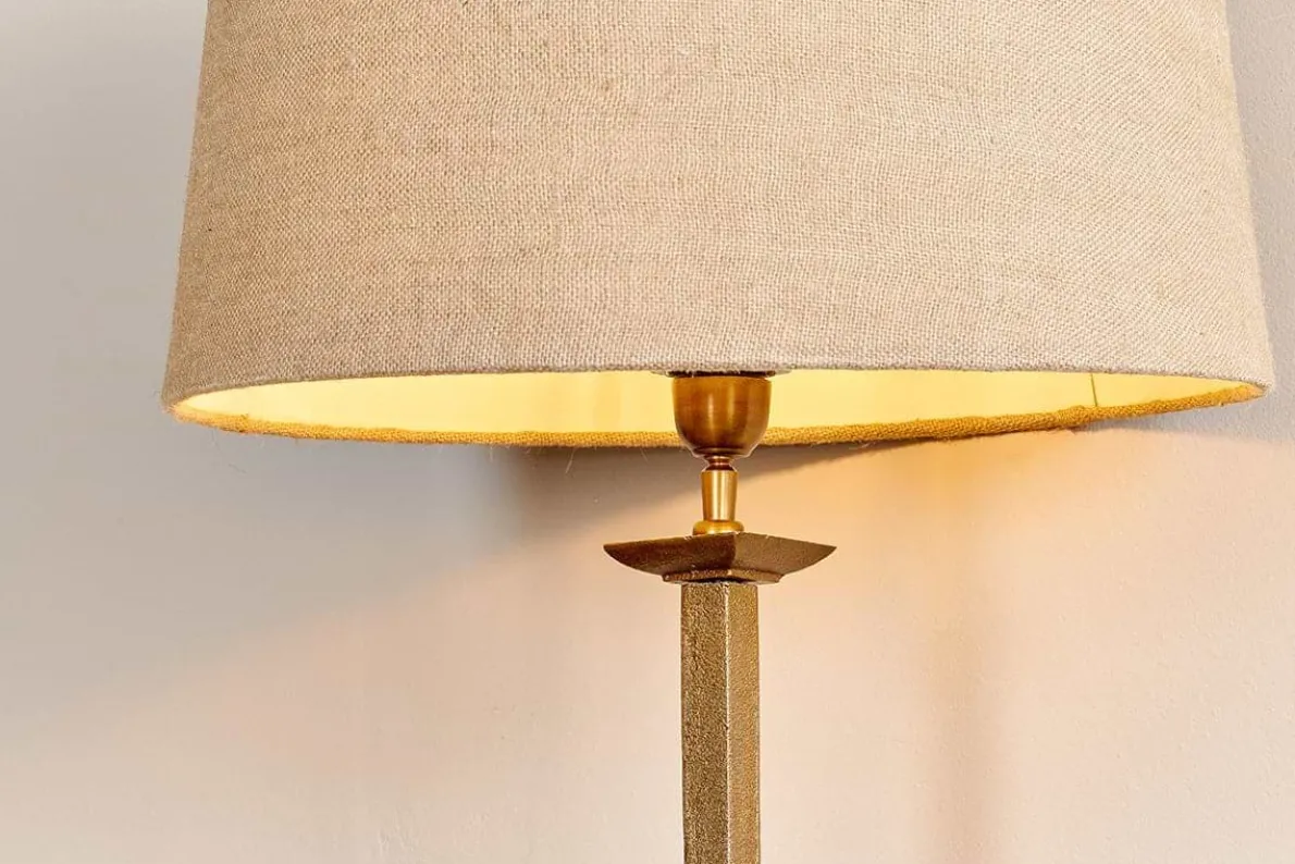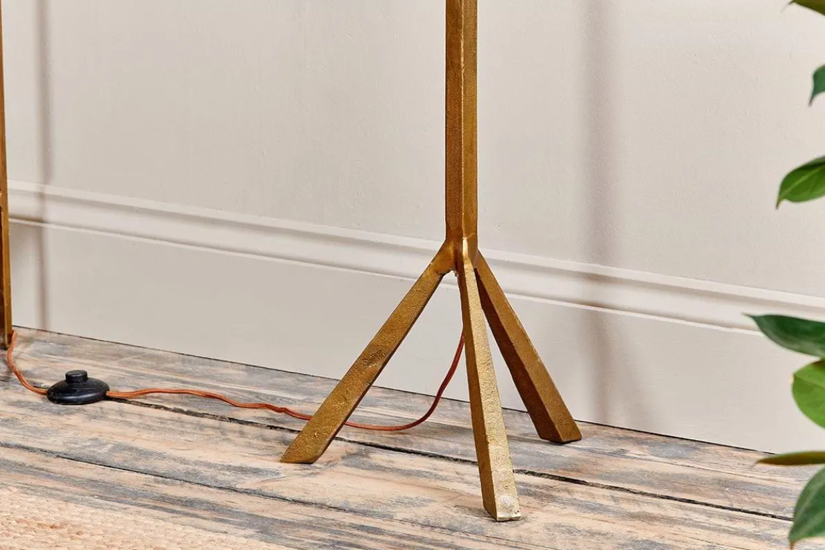 The Sahhil iron tripod floor lamp fuses traditional materials and techniques with modern design. The low tripod base and sturdy pole have a textured finish. The antique bronze finish complements a variety of interiors and the use of iron gives it an industrial feel. The striking base can support a variety of lampshades, naturals for a more pared back aesthetic and colour for a bolder look. The footprint of the tripod is smaller than a standard tripod lamp making it easier to place in a room setting.