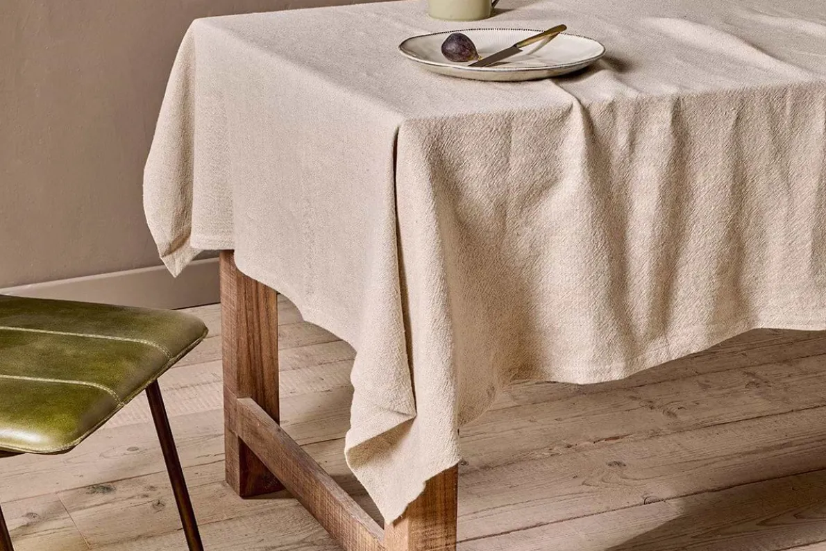 Our Sanee table cloth brings an understated elegance to your dining table. Its neutral hue and pared back design give it a timeless quality, which is enhanced by the durability of the natural fabrics used in its creation. The choice of linen and cotton combines sustainability with luxury and has an appealing tactile quality. This tablecloth not only protects your table, it adds character and creates a beautiful setting for your dinner. Style with the rest of the Sanee collection for a harmonious display.