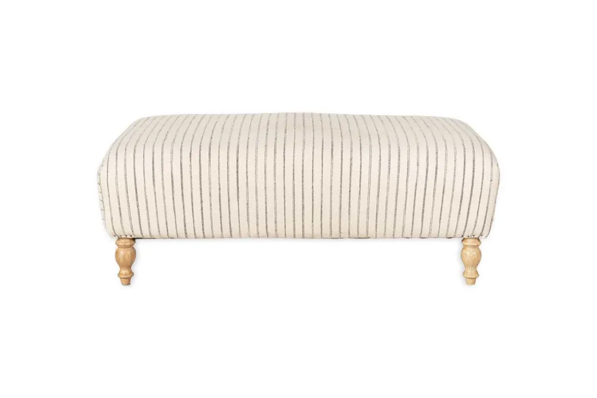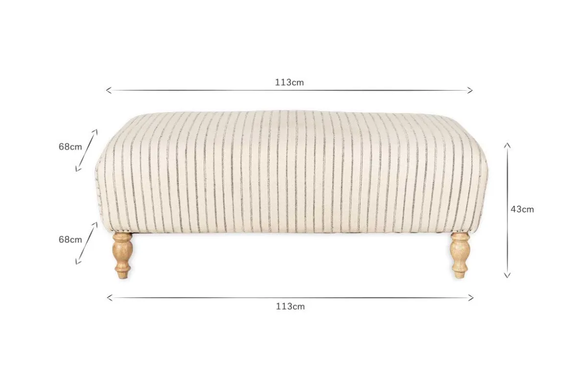 Our Sanja ottoman is a beautiful addition to a living room or bedroom, with its striped design making it a truly timeless piece. The faded woven stipe contrasts subtly with the ottomans natural linen base for a gentle patterned look that fits in with a neutral, natural scheme or brings calm to a brighter setting. The generous proportions makes it exceptionally comfortable, and its turned wooden legs add an attractive decorative detail. Pair with our Sanja Stripe Armchair.
