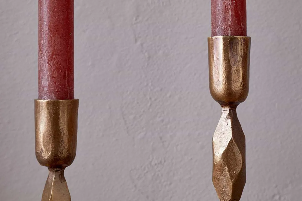 At nkuku we are drawn to organic shapes and unique textures and our Shani Candlesticks perfectly embody both. Crafted from molten aluminium poured into moulds, they feature beautifully textured, organic ball shapes along the body. The antique brass finish adds a timeless touch. Perfect for styling on a dining table or sideboard, pair them with our soy blend dinner candles for a warm, inviting glow. Available in three sizes, they also make a thoughtful gift.
