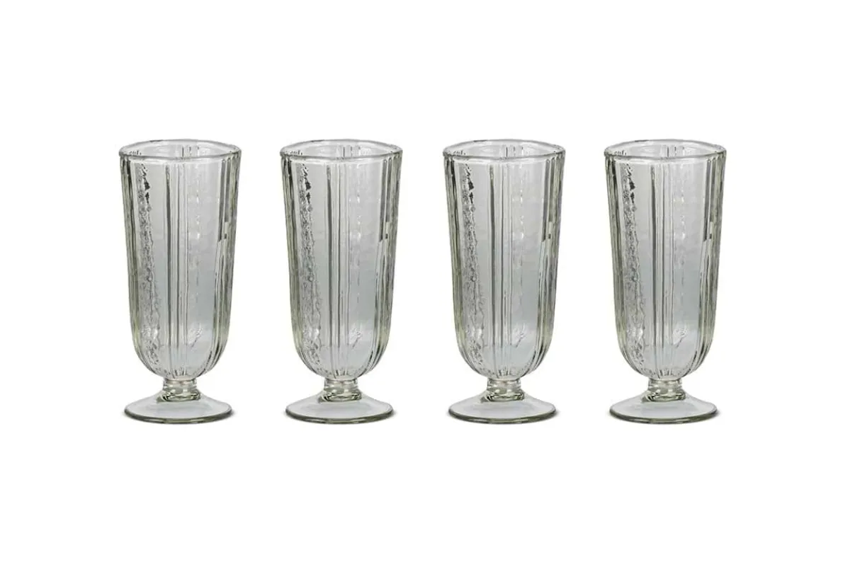 The Sigiri tall wine glass has a playful informal shape. The glass is made from recycled glass and mouthblown into this appealing tall shape. The edge of the glass is decorated with an organic ribbed detail that adds to the tactility and rustic look of the glass. The glass bowl rests directly onto the base. The Sigiri tall wine glass is ideal for relaxed lunches and suppers both inside and out.
