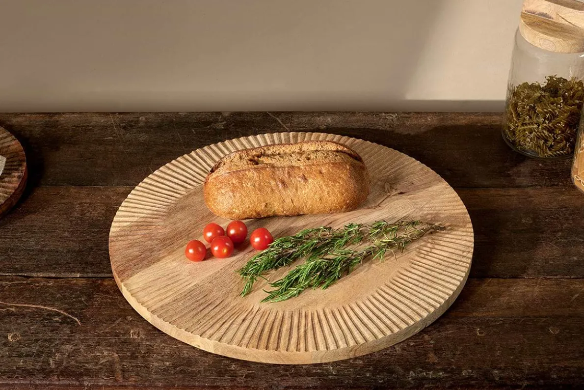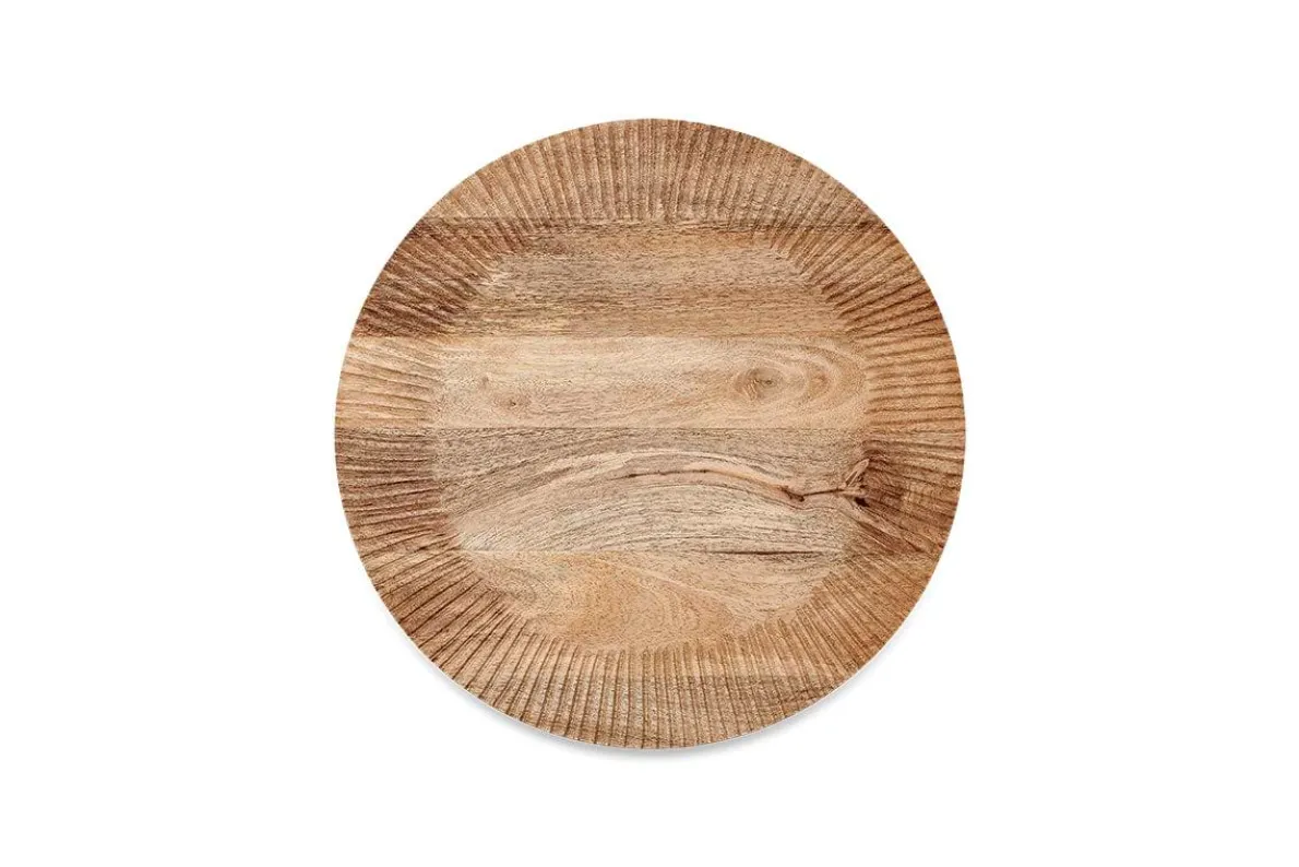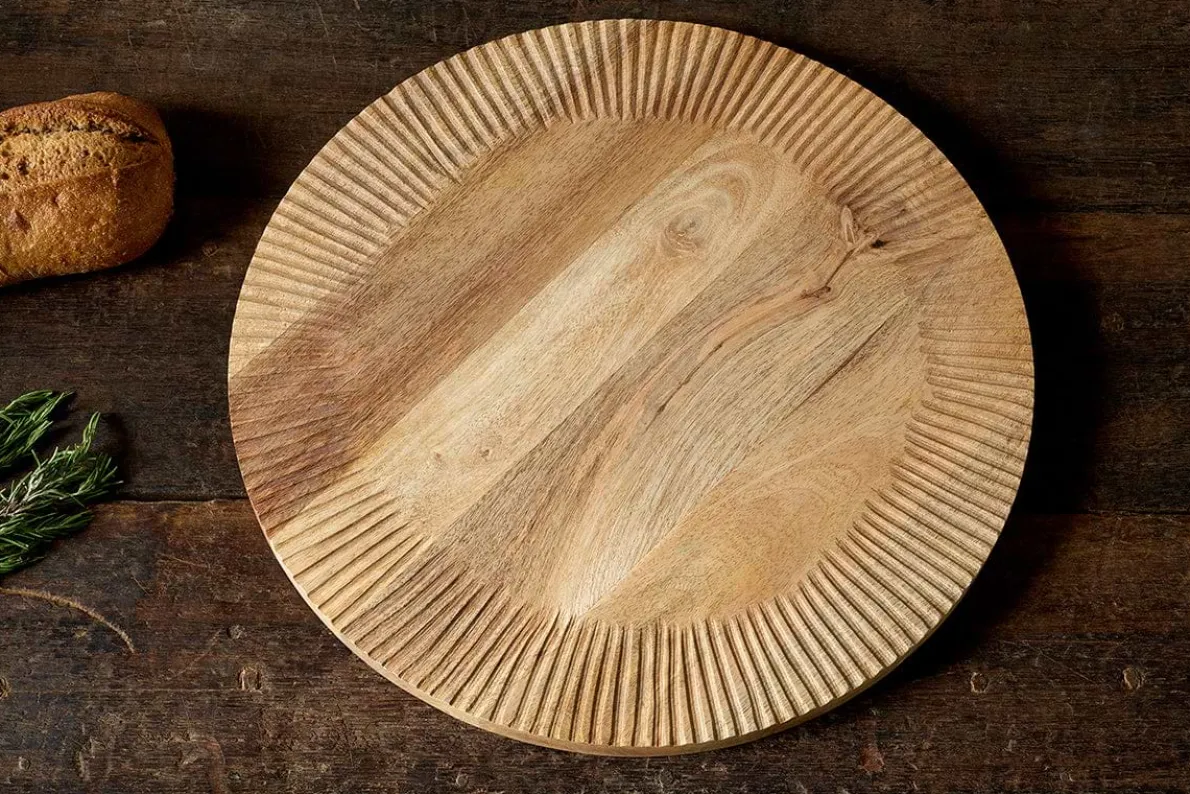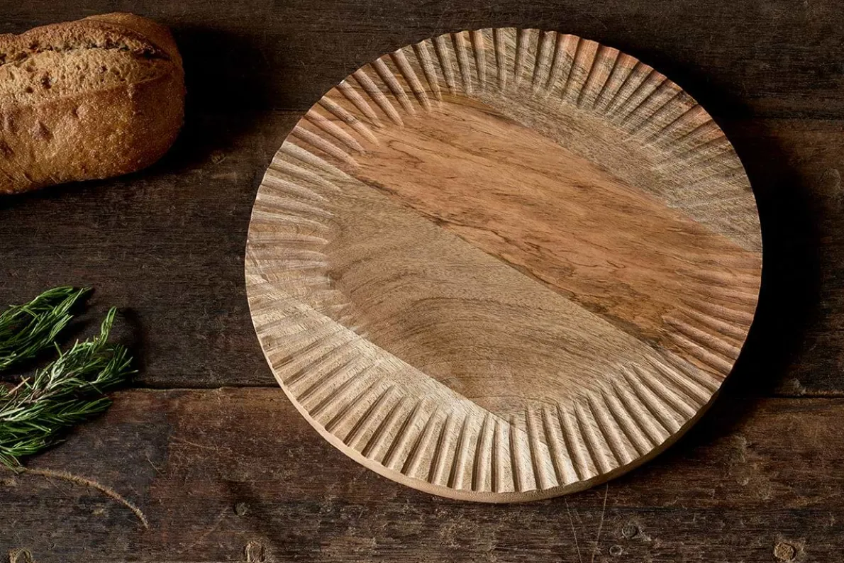 Decorative yet practical, our round Soria Chopping Board is hand carved from sustainable mango wood. The board features a pretty, hand crafted etched edge, resulting in a textured and attractive pattern that translates from practical use in the kitchen, to the table.