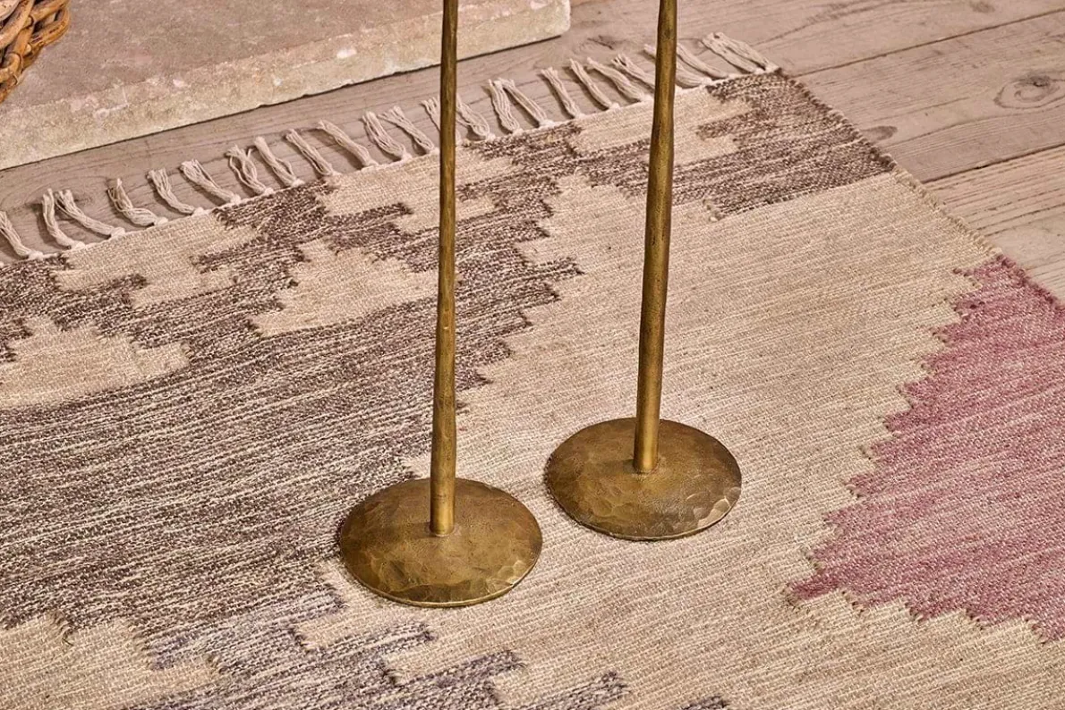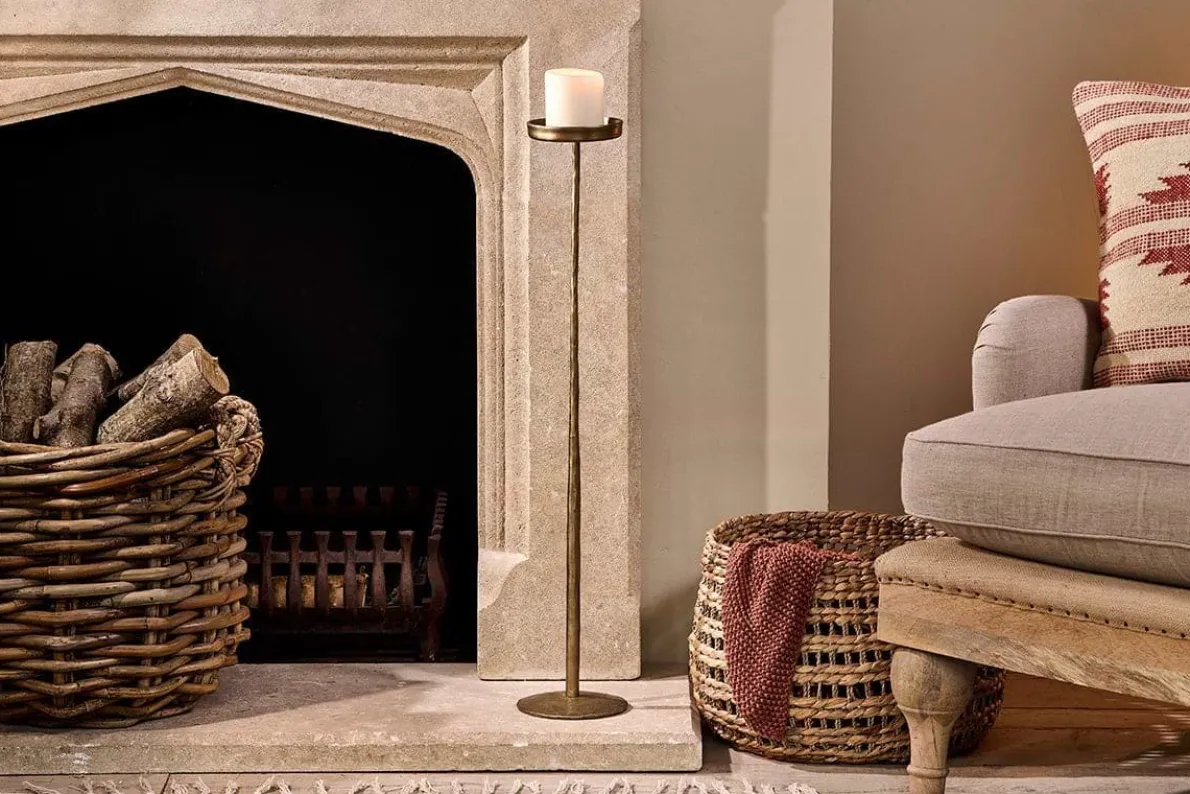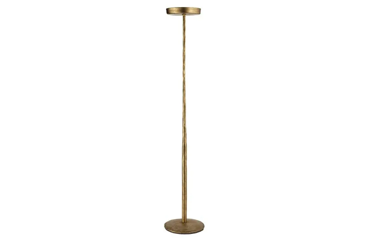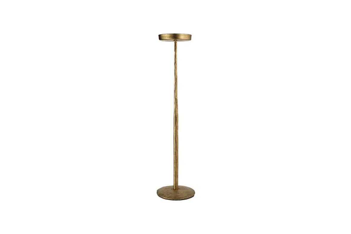 Our Sundra candle stand makes a sophisticated statement. The saucer-shaped candle holder, perfectly suited to a pillar candle, allows the candle to be completely on display while the tall, elegant stem is truly eye-catching. Although it looks delicate, it’s crafted from forged cast iron and has a weighted base for extra stability. Its rustic antique brass finish was skillfully created during the soldering process. Style next to your fireplace for a beautiful display. Available in two sizes. Style with our pillar candles.
