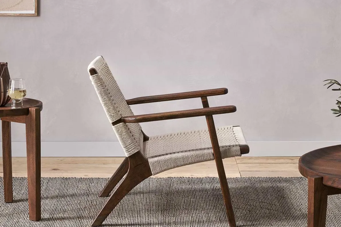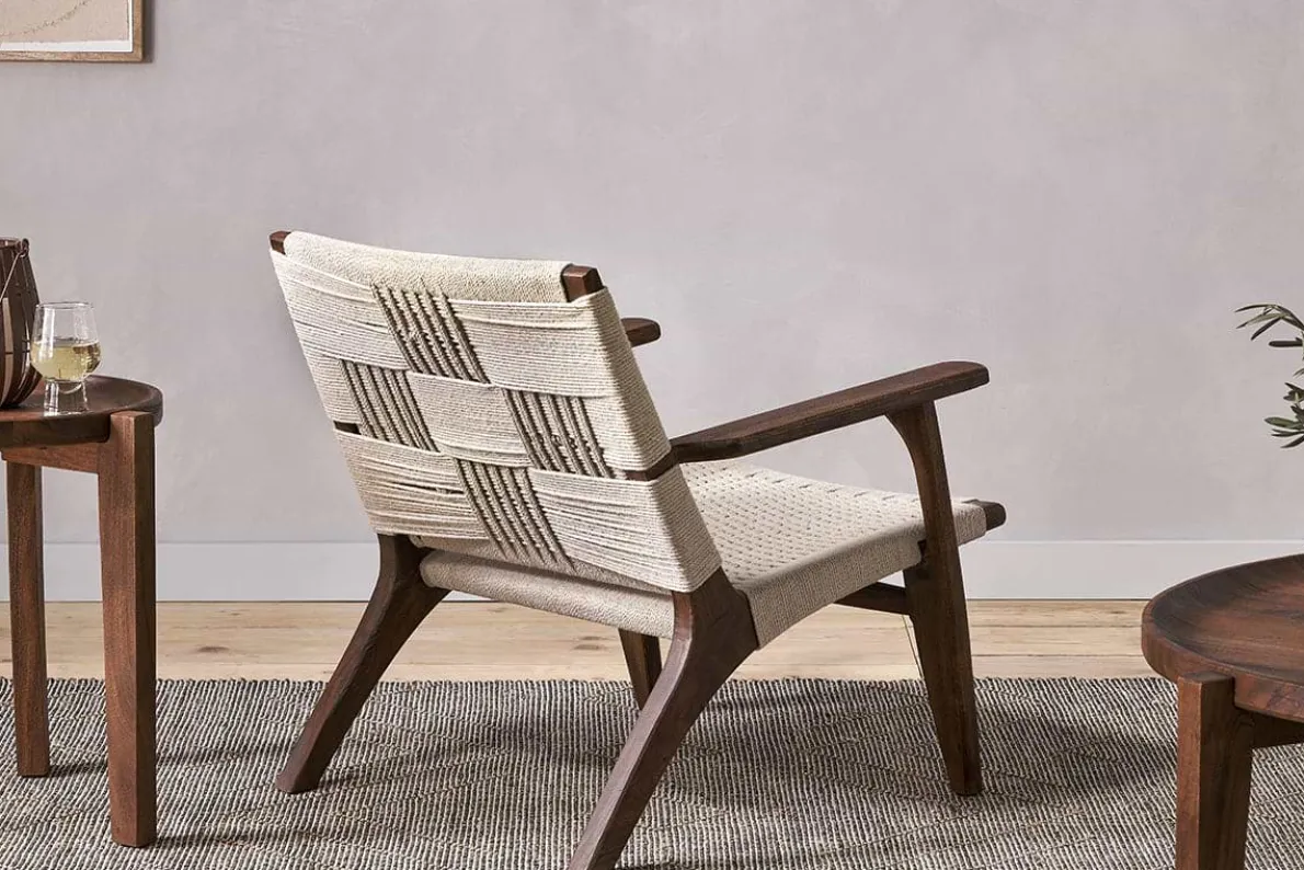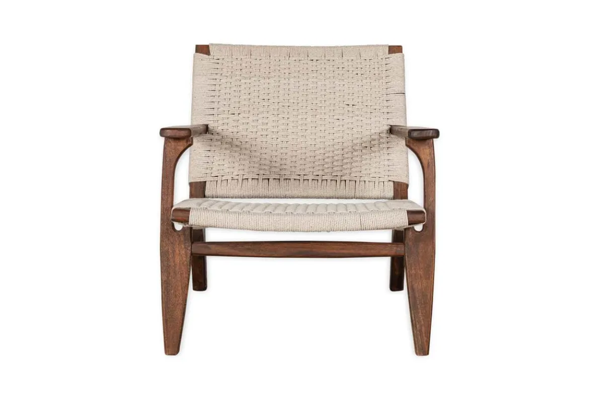 This simple lounger is made from acacia wood which we love for its warm natural tones and beautiful grain. The simple, timeless design is generously sized for maximum comfort and the seat and back support is made from hand-woven cotton rope in a natural tone that effortlessly complements its wooden structure.