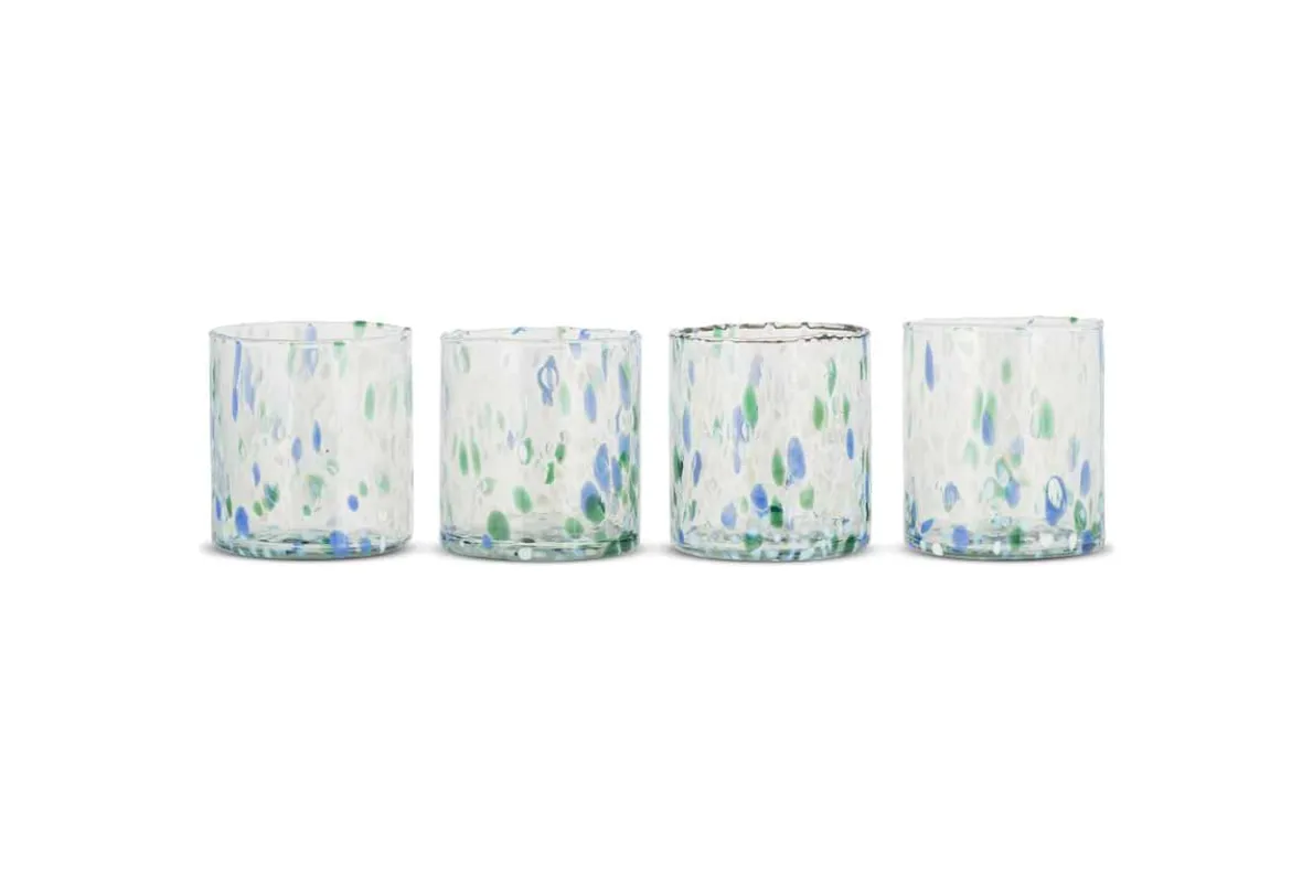 Each mouth-blown recycled glass Taja Tumbler brings a soft palette of fresh aqua tones in gentle blues and greens to instantly freshen up a table setting. Coloured glass fragments are introduced to the clear molten glass, creating a free-flowing design and unique finish that is also highly durable as the pattern is contained within the glass itself. The stylish, organic design, with its sturdy form and gently uneven rim, heightens the individual beauty of each glass.