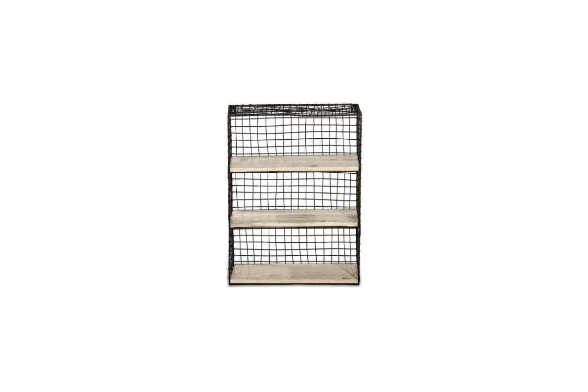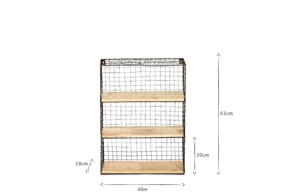 The rust coloured wire of these stylish Tamba wall hung shelves is complemented by the natural mango wood shelves. Style in a kitchen for a functional and eye -catching display.