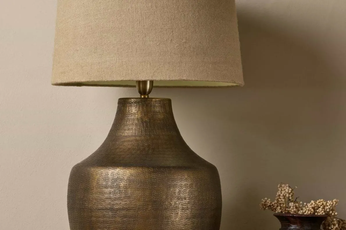 Enhance your living space with our impressive Tanda Table Lamp. Its delicate hand-etched design beautifully softens the traditionally harsh look of metal, while the rounded shape and antique brass finish add a touch of elegance. Perfect for making a sophisticated yet subtle statement in your living space, this lamp makes a wonderful addition to any home.