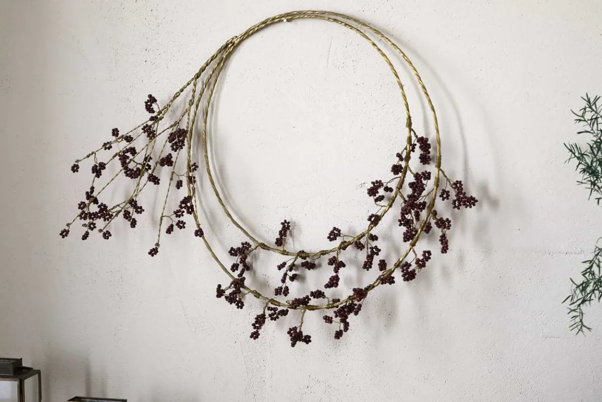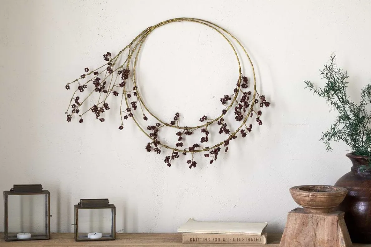 Layered with mango wood beads and antique brass-coloured wire, this wreath offers a fuller, more dimensional take on festive decorating. The warm tones and intricate, organic design make it a striking centrepiece for doors, walls, or festive displays.