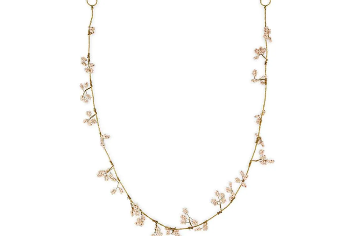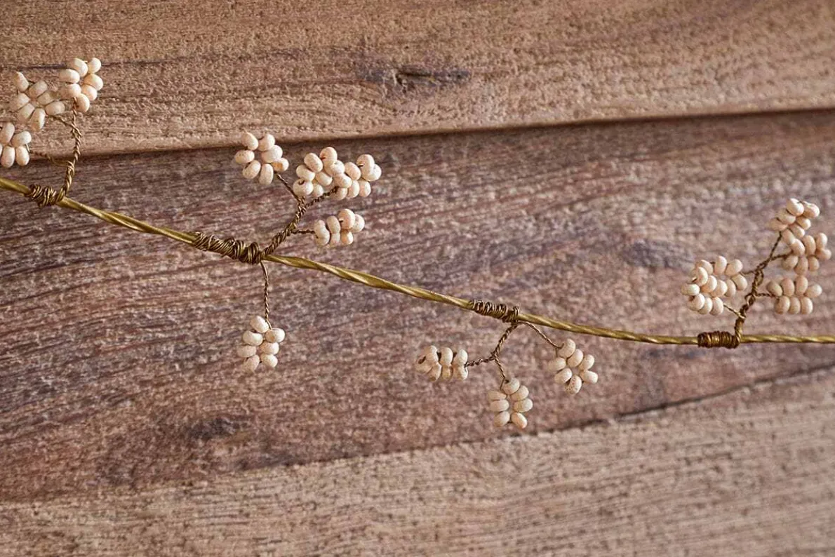 This festive garland brings together mango wood beads and antique brass-coloured wire in a delicate, foliage-inspired design. Its natural texture and warm metallic accents make it a versatile piece for dressing mantels, banisters, or festive tables with understated seasonal charm.