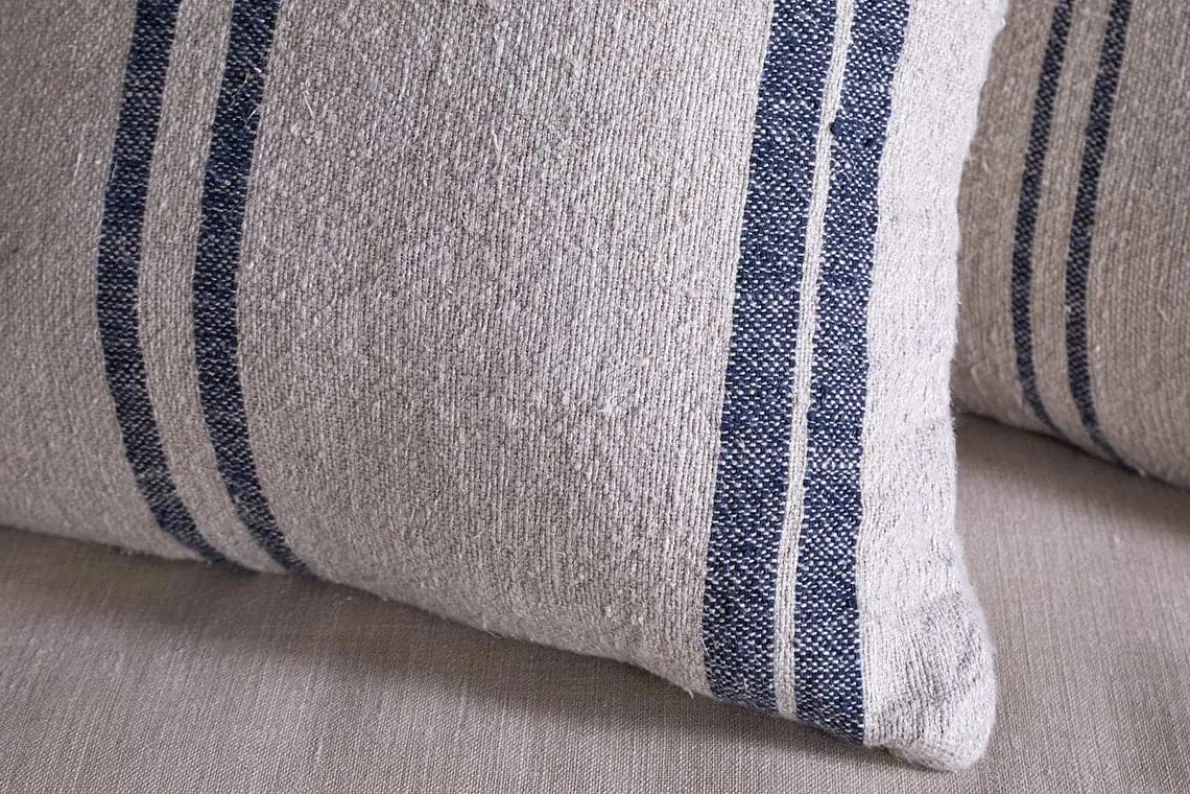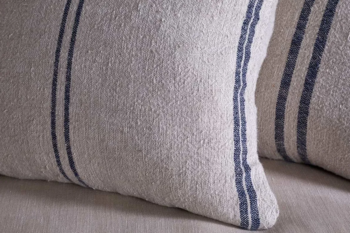 Exuding laidback elegance, our Tendali Linen cushion cover in neutral with a bold navy stripe is crafted from tactile slubby linen that is irresistibly soft to the touch. Perfect for updating a living space with its understated style or bringing a touch of timeless comfort to an outdoor setting. It also has ties at the back, for securing to a dining chair to create a laid back atmosphere. Please note, this is the outer cover only. Also available in a thin stripe variation. Our feather cushion inners will accompany your cushion cover perfectly. Please note, the size of the cushion inner will display slightly larger than our cushion covers to allow for a plump finish when put together.