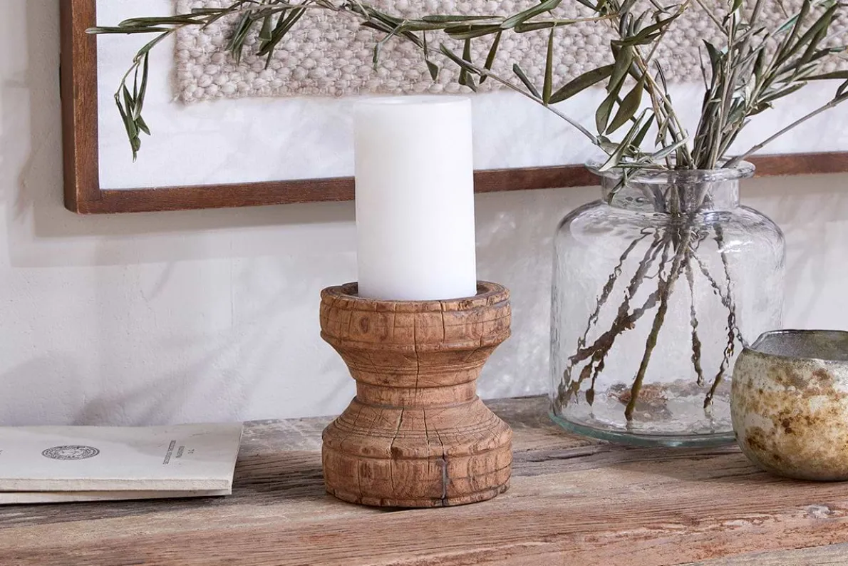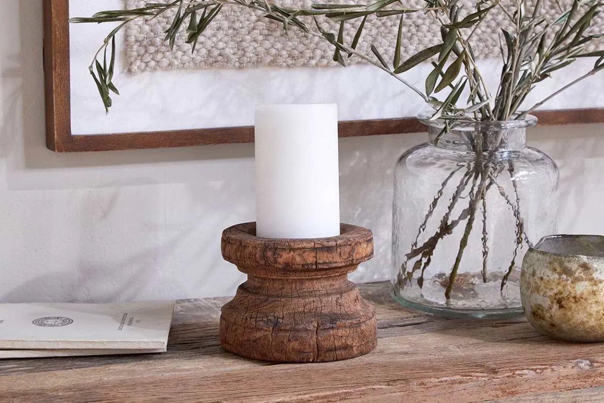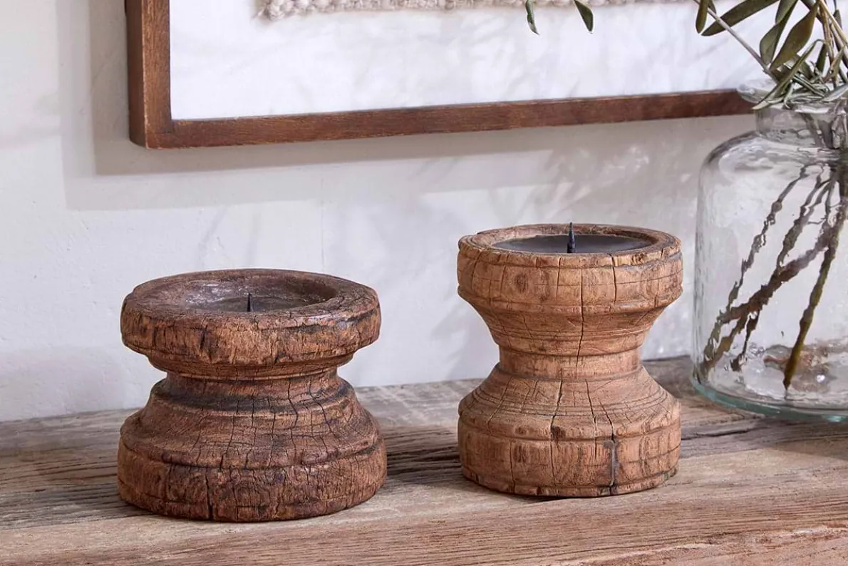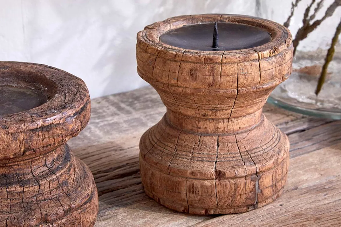 Sourced from local markets in India, our Thoko candle holders have been hand-carved into a decorative shape, making them truly one-of-a-kind. These striking pieces offer a unique and sustainable addition to your home and the perfect conversation piece for a coffee table. Please note that due to their reclaimed nature, candle holders may differ in tones and finish and vary in size by up to 10cm celebrating the individuality of every piece. Available in both round and square designs. Pair with our rustic soy blend Pillar candles.