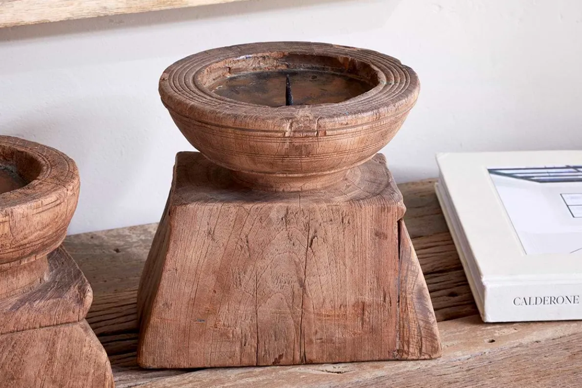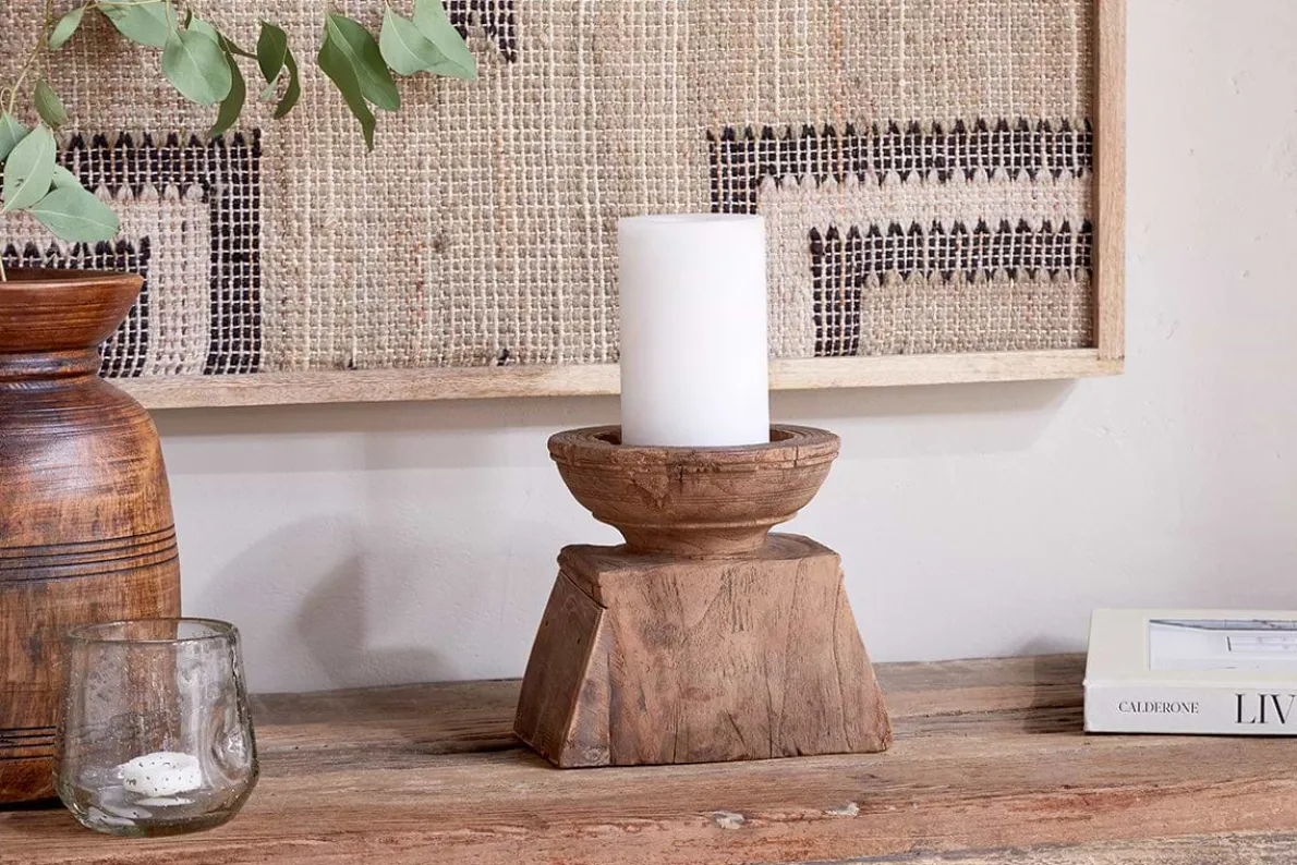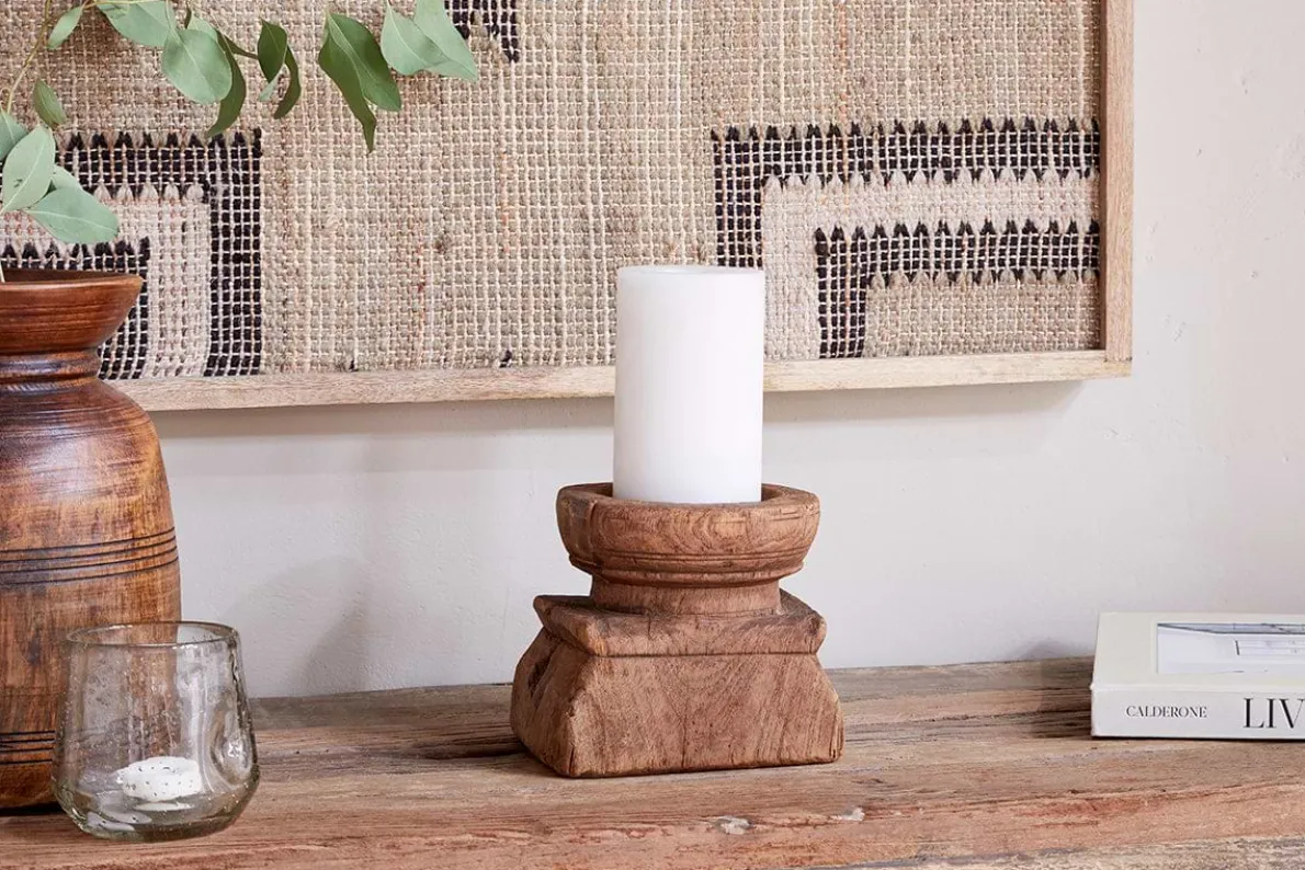 Sourced from local markets in India, our Thoko candle holders have been hand-carved into a decorative shape, making them truly one-of-a-kind. These striking pieces offer a unique and sustainable addition to your home and the perfect conversation piece for a coffee table. Please note that due to their reclaimed nature, candle holders may differ in tones and finish and vary in size by up to 10cm celebrating the individuality of every piece. Available in both round and square designs. Pair with our rustic soy blend Pillar candles.