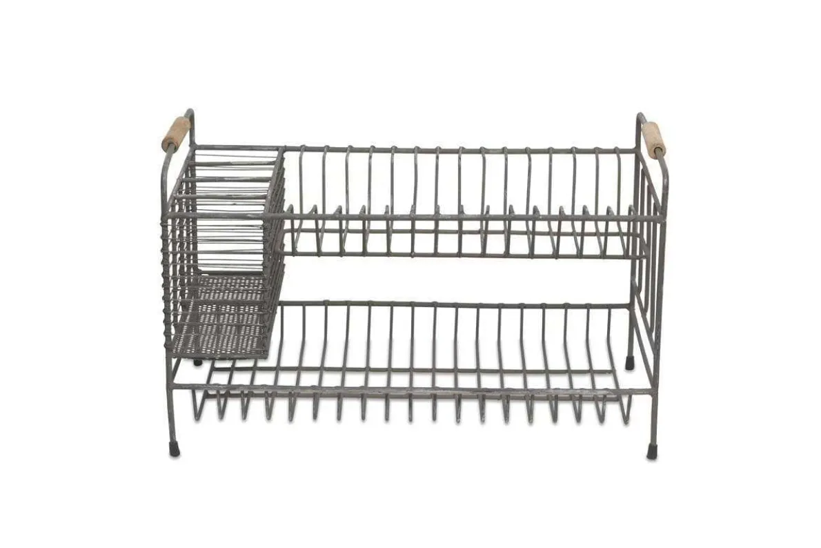 Our Tilmo Dish Rack is a stylish take on an everyday item. This industrial looking metal rack comes in a distressed grey finish. It contains practical plate racks and storage compartments for drying utensils. Who would have thought you could make washing up such a stylish chore