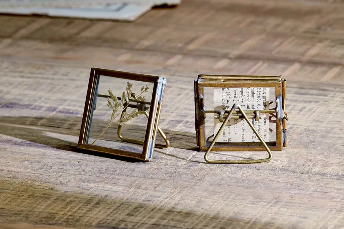We think these exquisite tiny frames were the perfect complement to our popular Danta frame collection. They come as a set of two, and have a simple, stylish brass border and a beautiful yet practical stand.