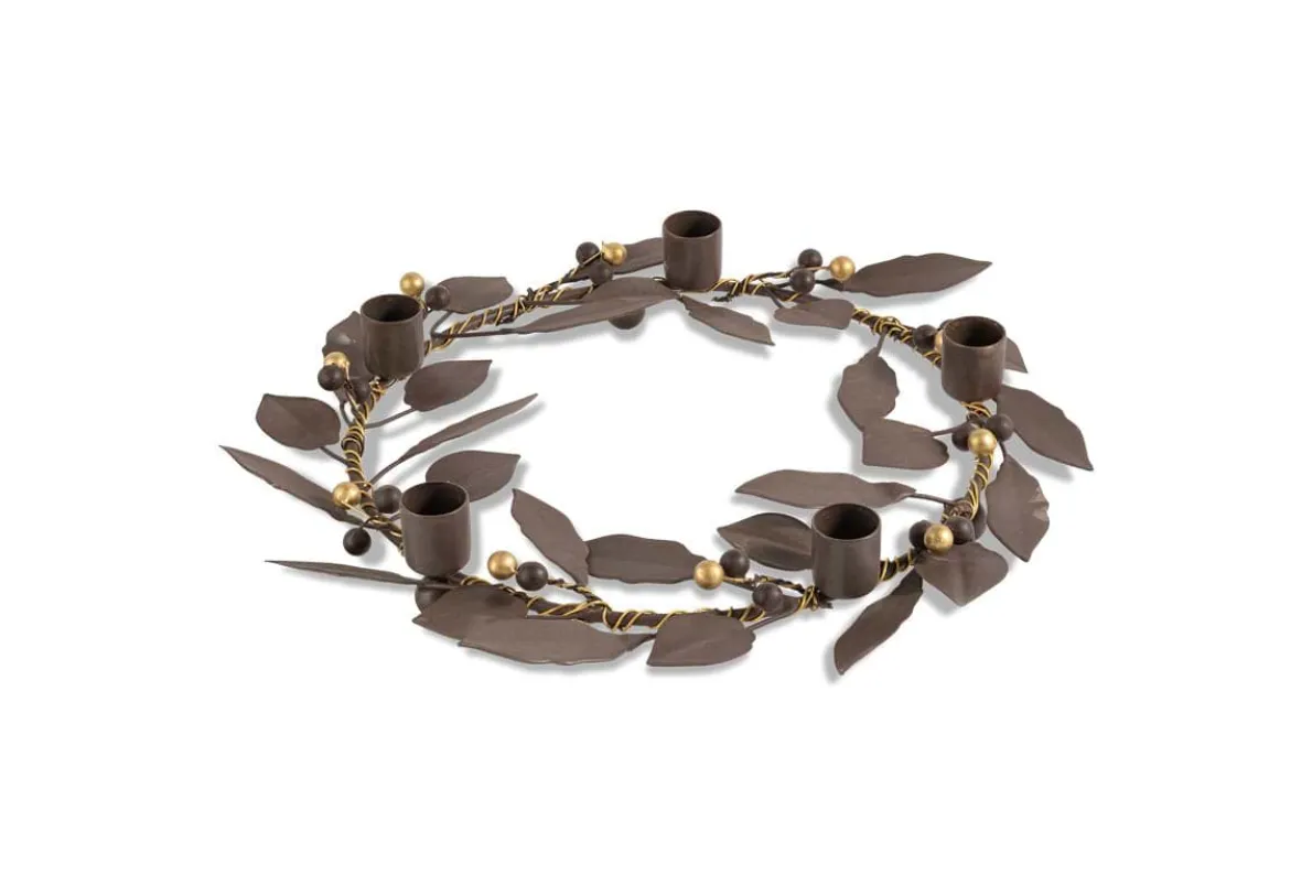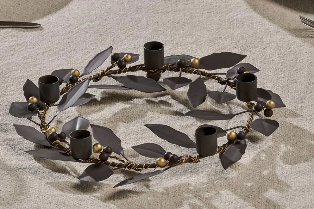This delightfully natural and understated candle holder is made up of individual leaves and berries, welded together to form a beautiful and elegant piece. Perfect for seasonal entertaining, it holds five dinner candles, and would look stunning paired with our dinner candles.