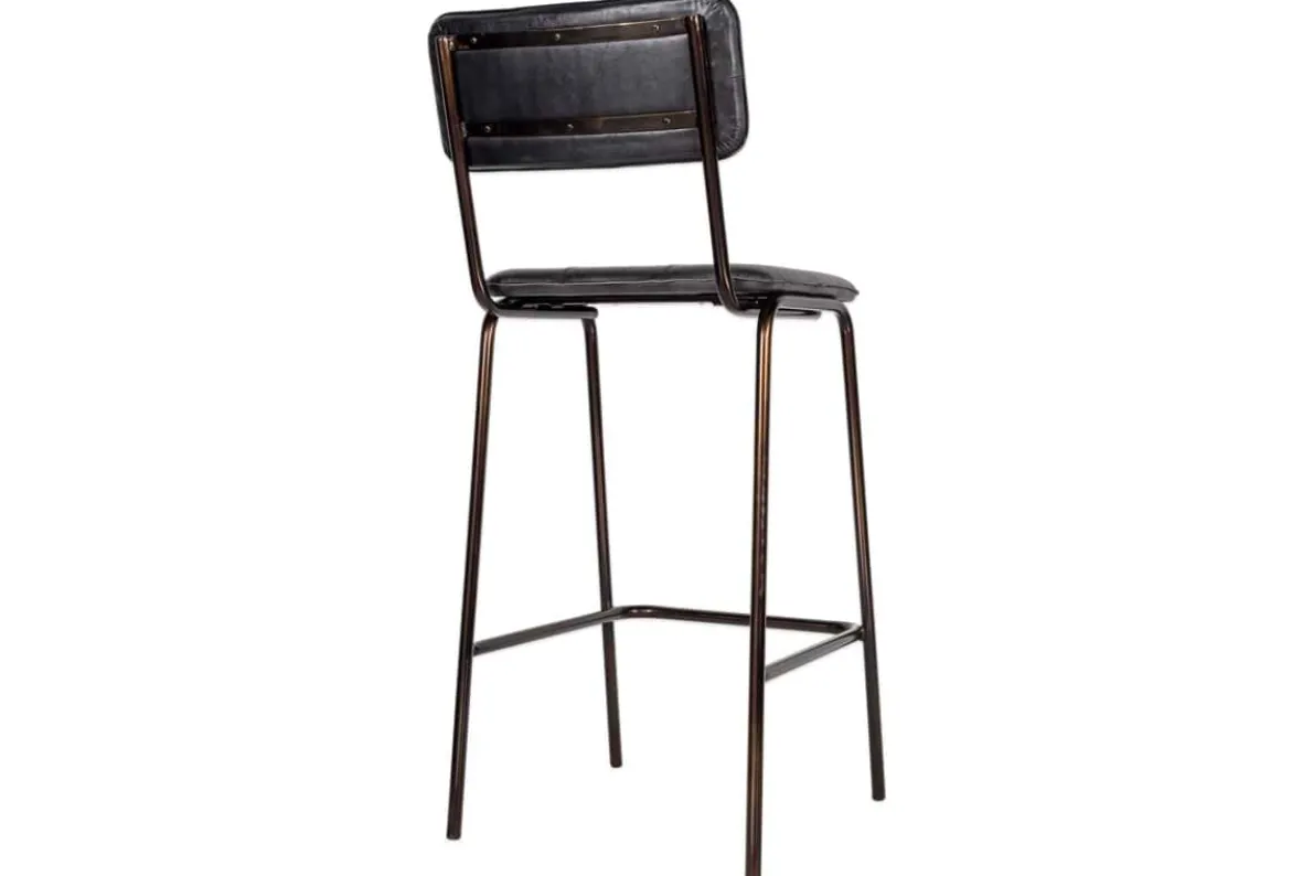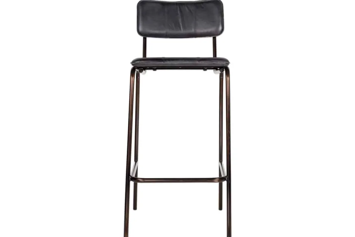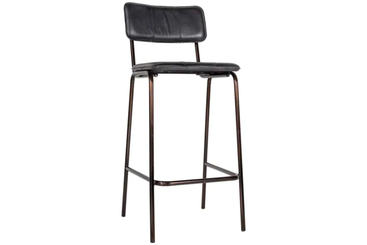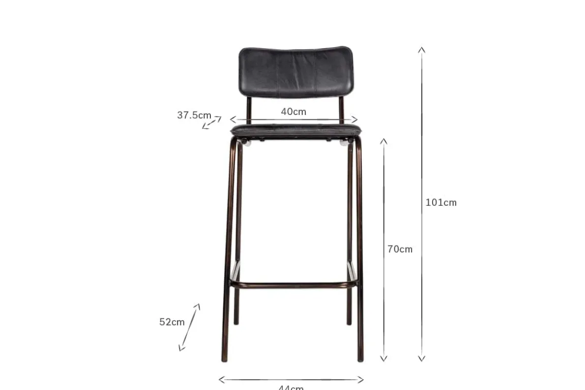 We’ve added this aged-black leather counter-height bar chair to our best-selling Ukari collection. This practical, durable, and comfortable design has a simple, solid iron frame and footrest, and a padded seat and back support. Upholstered in handmade buffalo leather, it is stitched to create three panels which adds a stylish design detail to the piece. Designed to work with a kitchen island, counter or breakfast bar, the Ukari counter chair tucks neatly under a kitchen counter top. The leather upholstery is a by-product and is dyed using vegetable extract and tree bark which means the leather colour will enrich further with time. The Ukari collection includes dining chairs and counter stools in a selection of rich colours.
