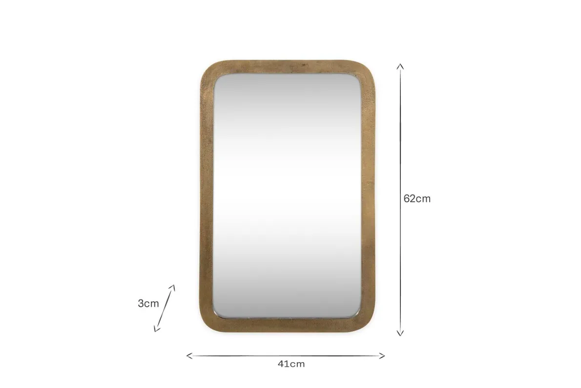 Our Ungura rounded mirror is a striking combination of both craftsmanship and style. Handcrafted from cast aluminium, it boasts an imperfect textured finish achieved by being shaped and moulded using sand casting, an environmentally-friendly process that allows nearly every material to be recycled. Its soft, rounded edges and elegant brass colour add a stylish charm to any space. Designed for portrait hanging, it is an ideal choice for your bedroom or bathroom. Available in two sizes.
