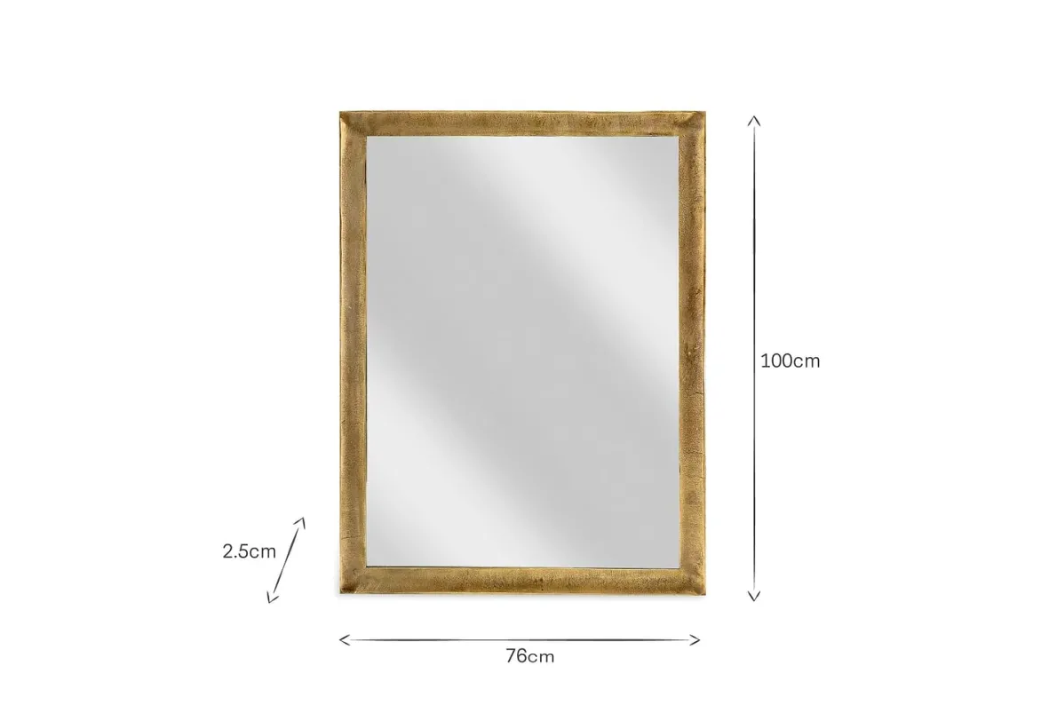 The large Yadur mirror is handcrafted in a traditional and versatile rectangular shape. The striking curved frame is finished in a warm brass hue, crafted from cast aluminium giving it an appealing texture. This mirror is perfect for transforming a hallway into a stylish entrance, and the size is proportionally well-suited to sit above a console. Equally it would work well above a mantelpiece, or positioned in dining area, adding light and creating an illusion of space.