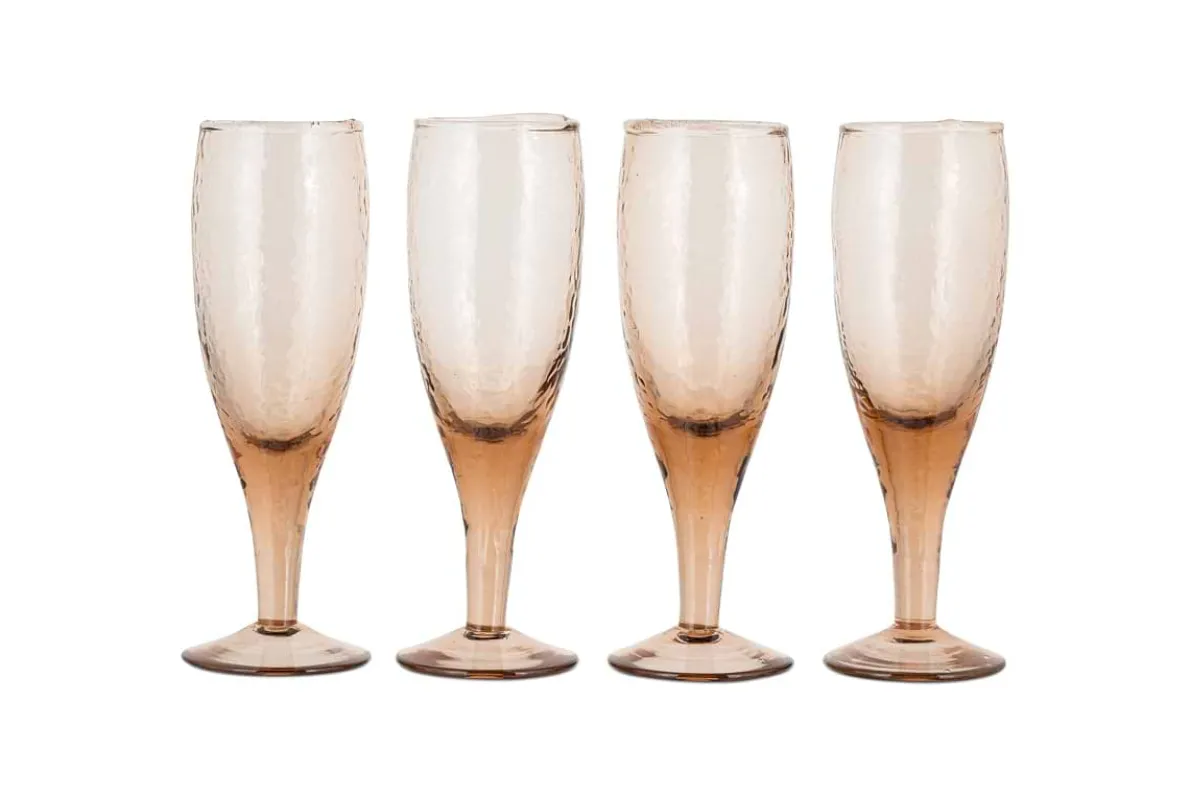 We’ve added a Dusty Terracotta colour option to our best-selling range of recycled Yala glassware, bringing a rich tonal hue to the table and tactile hammered details that lend a shimmering quality to the glass. Classically shaped with a shorter, sturdier stem, this set of 4 champagne glasses add sophisticated style to any table setting, and can be mixed and matched across the Yala range for an eclectic splash of colour.
