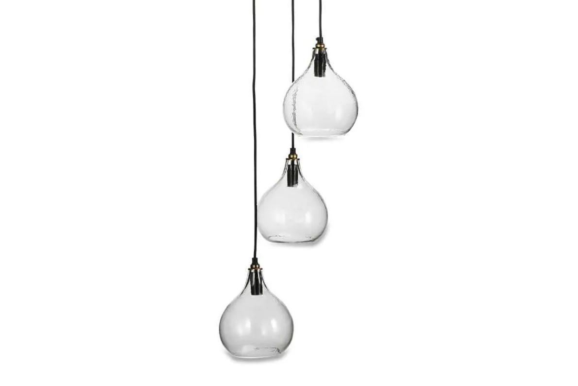 The distinctive design of our Ziva cluster pendant light makes it a standout feature . The clear glass light shade has a tactile organic shape, hand blown by talented artisans. The height of the pendant can be adjusted to fit the space required.