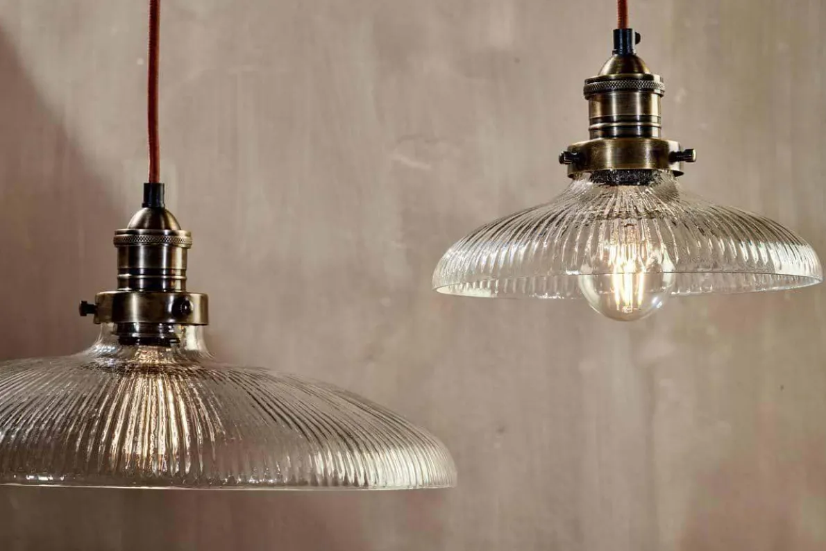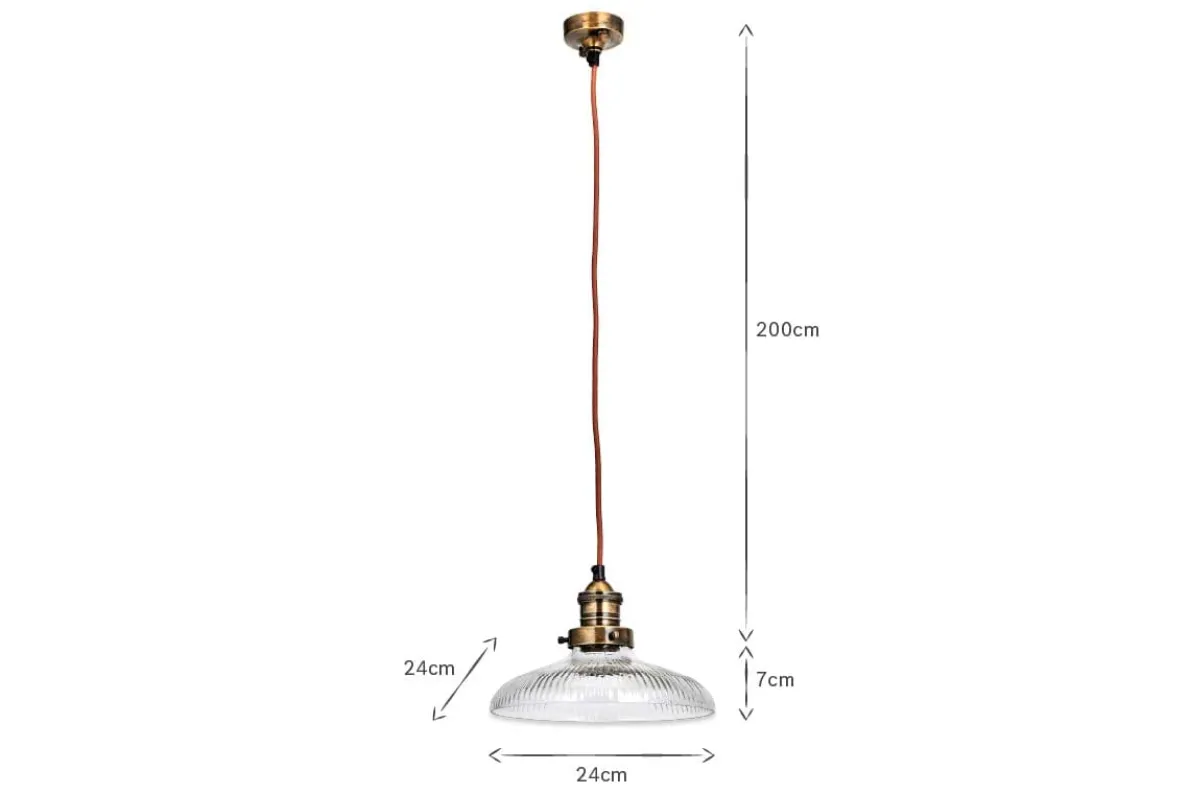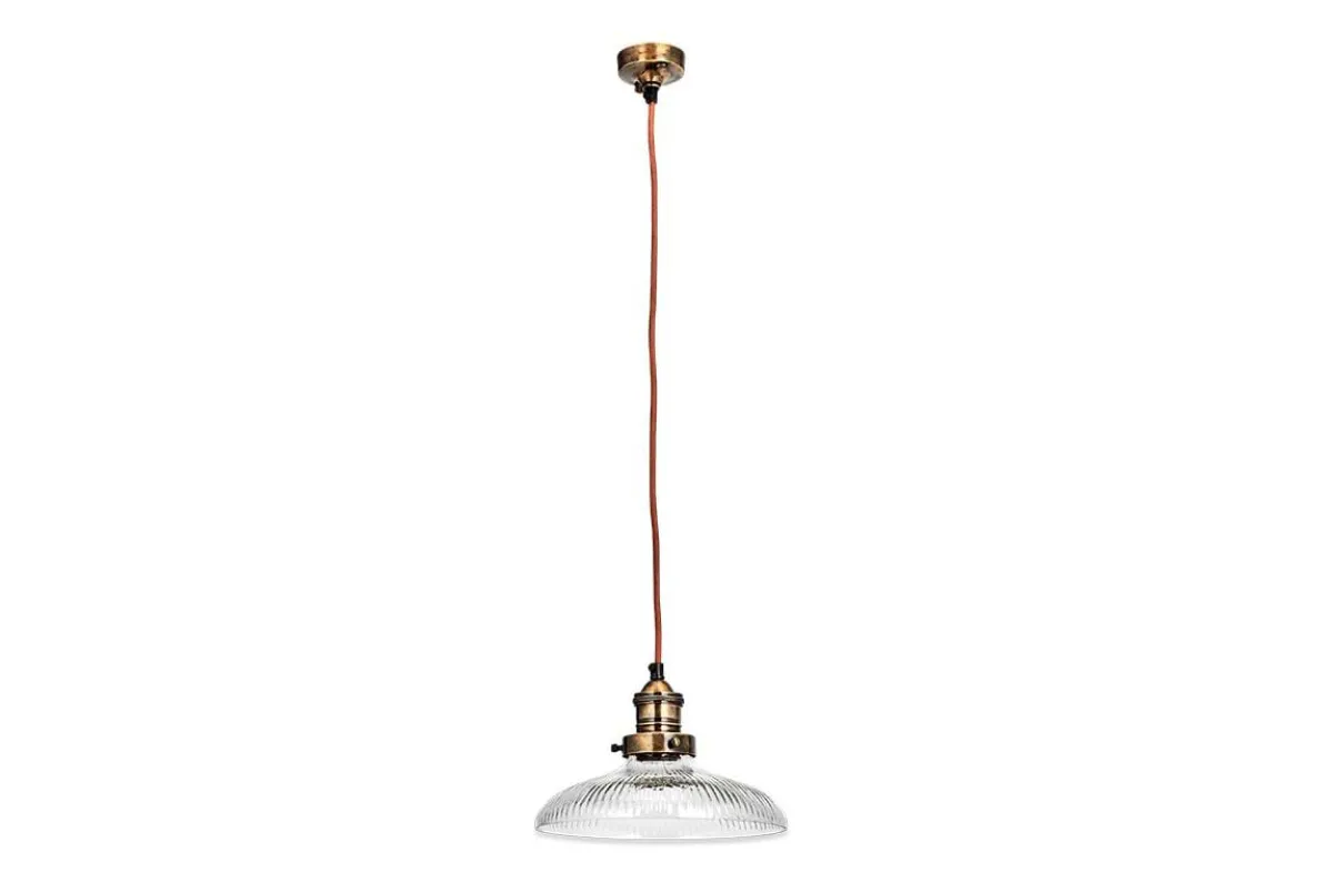 The small Zowie Pendant Light has a timeless elegance. The ribbed detailing of the glass shade, not only adds an attractive design detail but helps diffuse the light. The shallow lampshade design makes it ideal for displaying over a table, singularly or in a rows of three for real impact. The Zowie Pendant marries brass and glass in a timeless design.