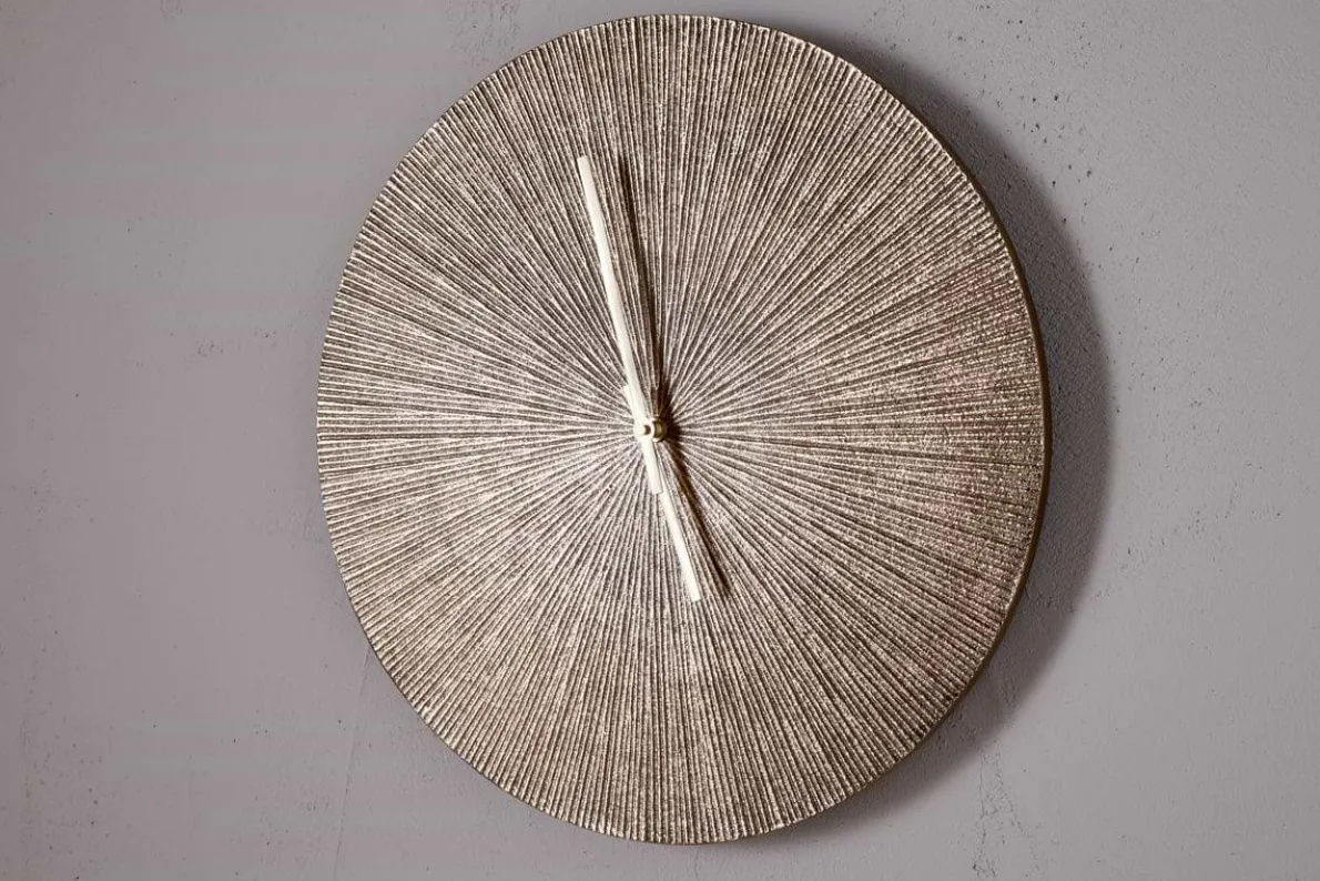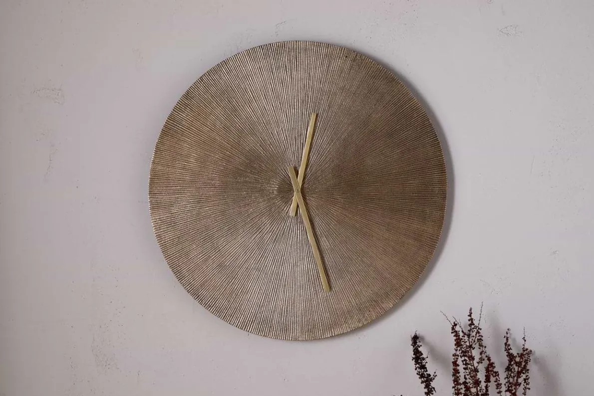 Keep time with our stylish Zuwena wall clock, which adds an instant touch of understated glamour to any room. The antique brass finish on the face is elevated by a subtly etched design, adding texture and depth to its minimalist form. Slim metal hands complete the simple, abstract look, making it a striking piece of wall art in its own right. Whether placed in a neutral, pared-back setting or on a richly coloured wall among other found objects, it brings quiet sophistication to any space.
